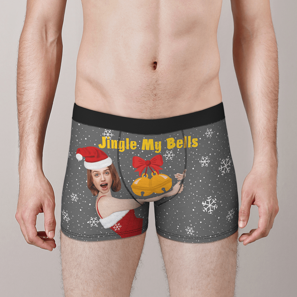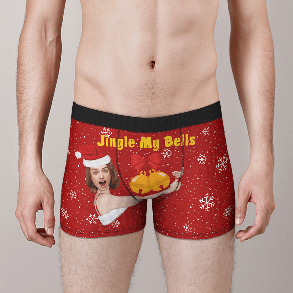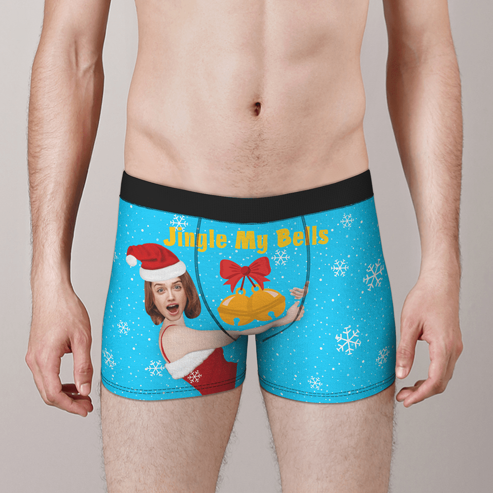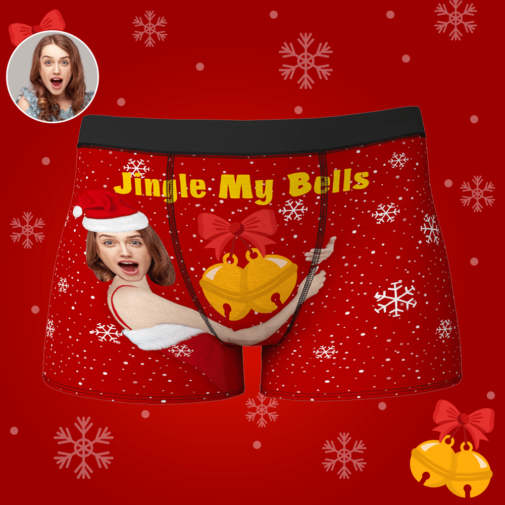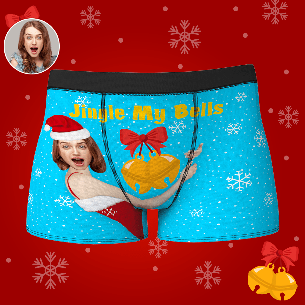 Boxer Personnalisé Visage Avec Clochette Cadeaux Noël Pour Petit Ami