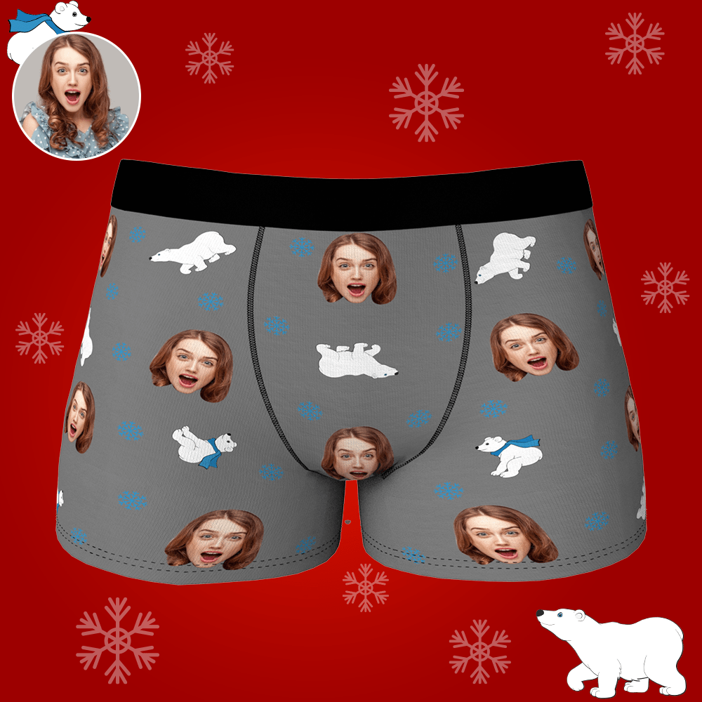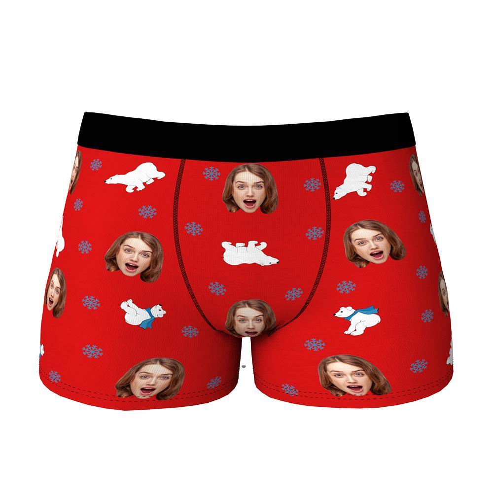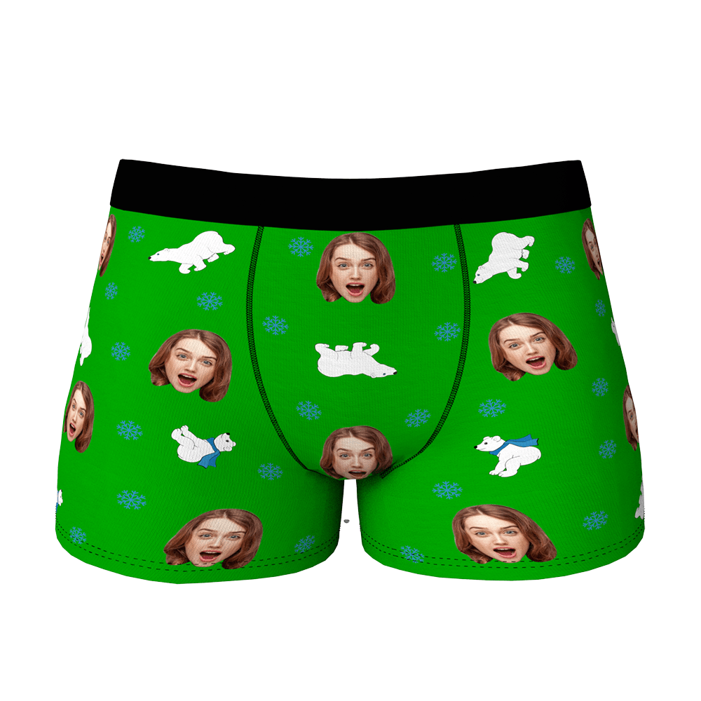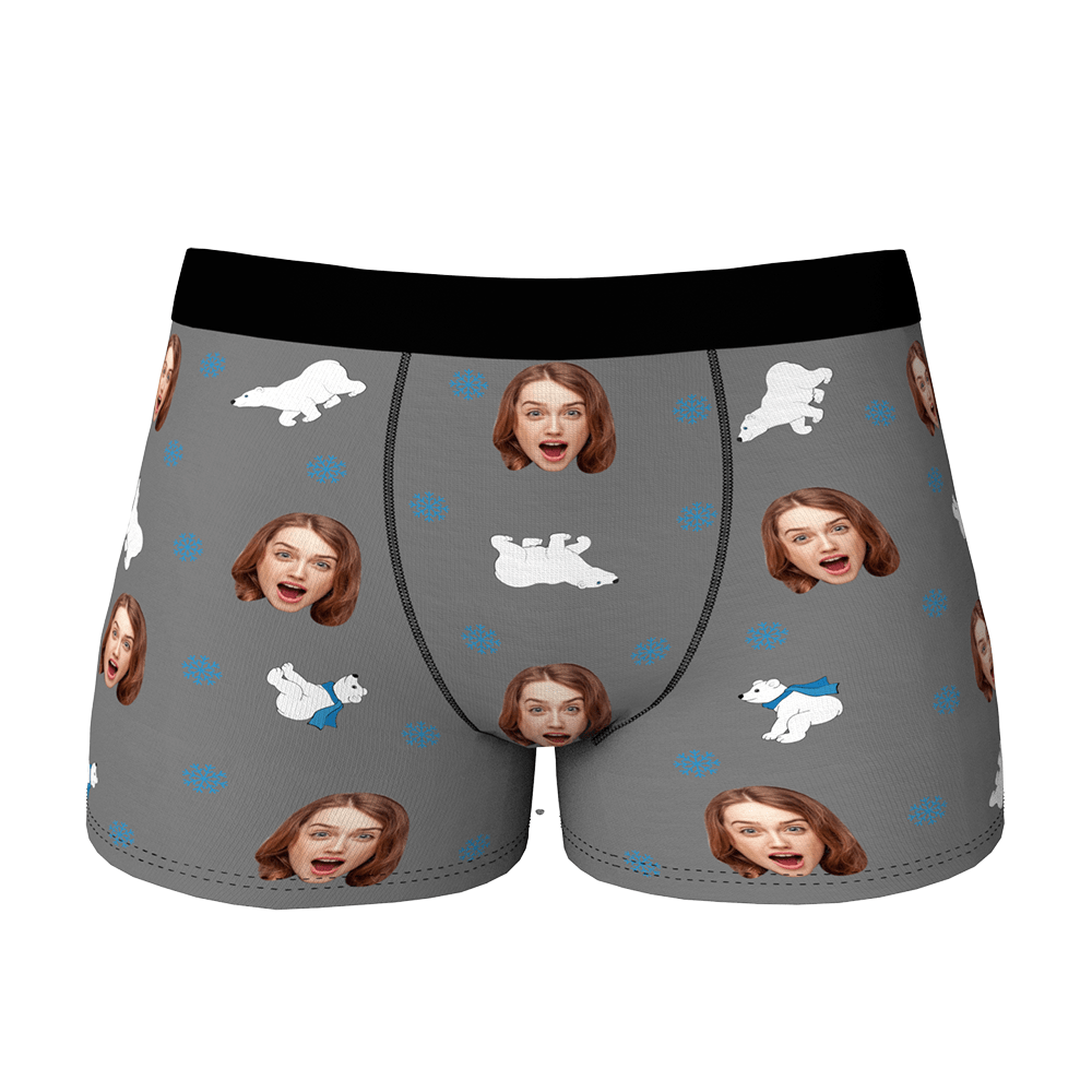 Boxer Personnalisé Visage Avec Ours Polaire Cadeau St Valentin Drôle Pour Lui