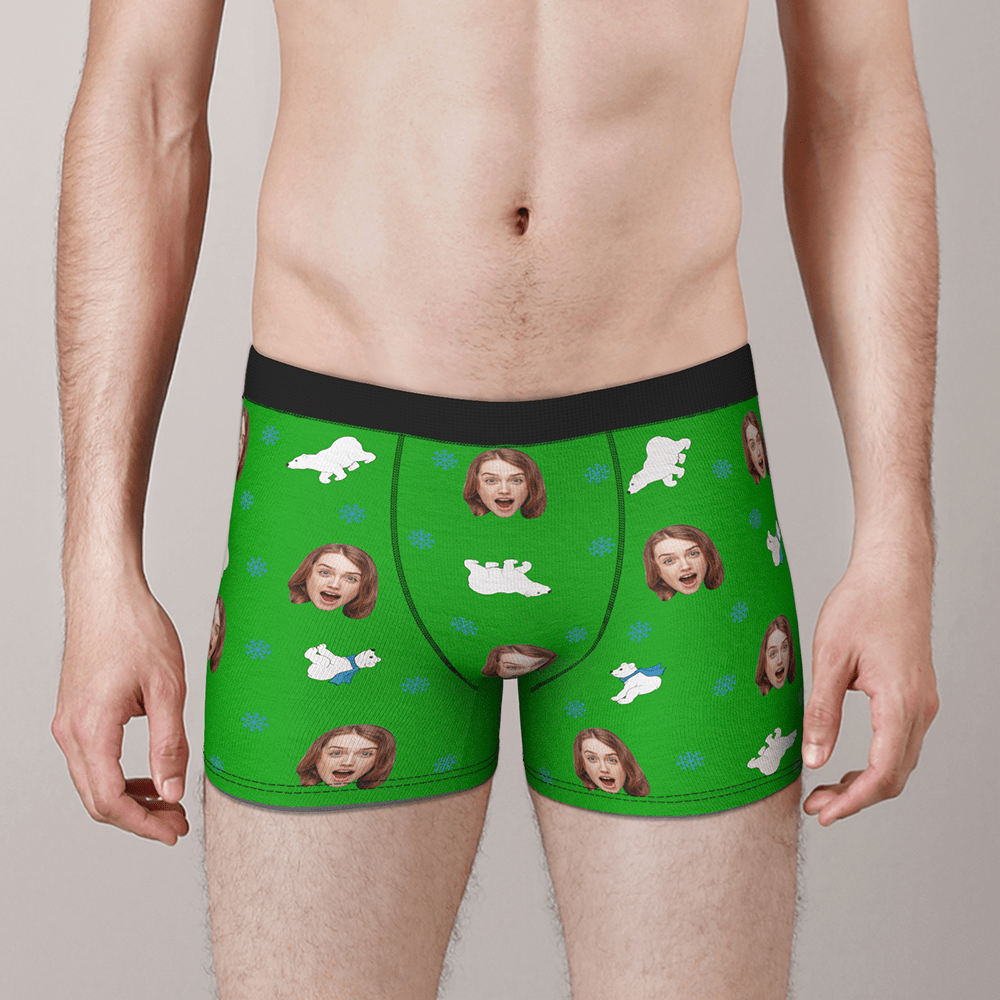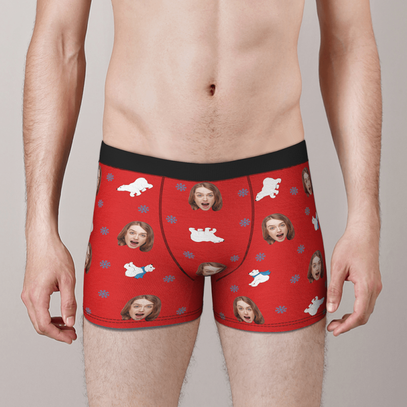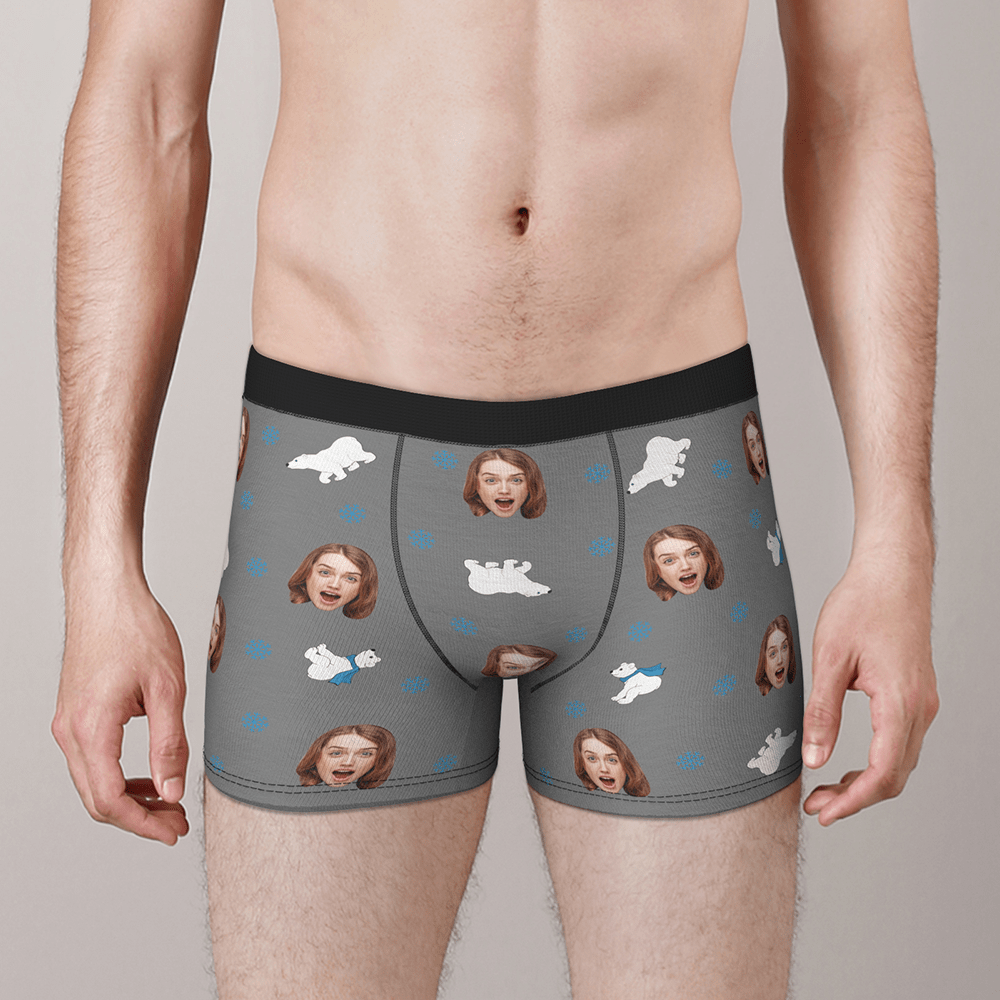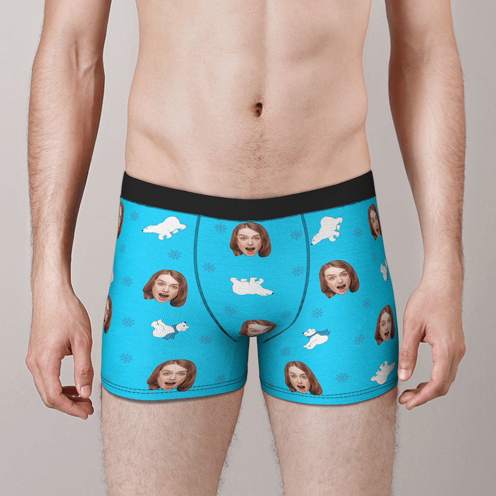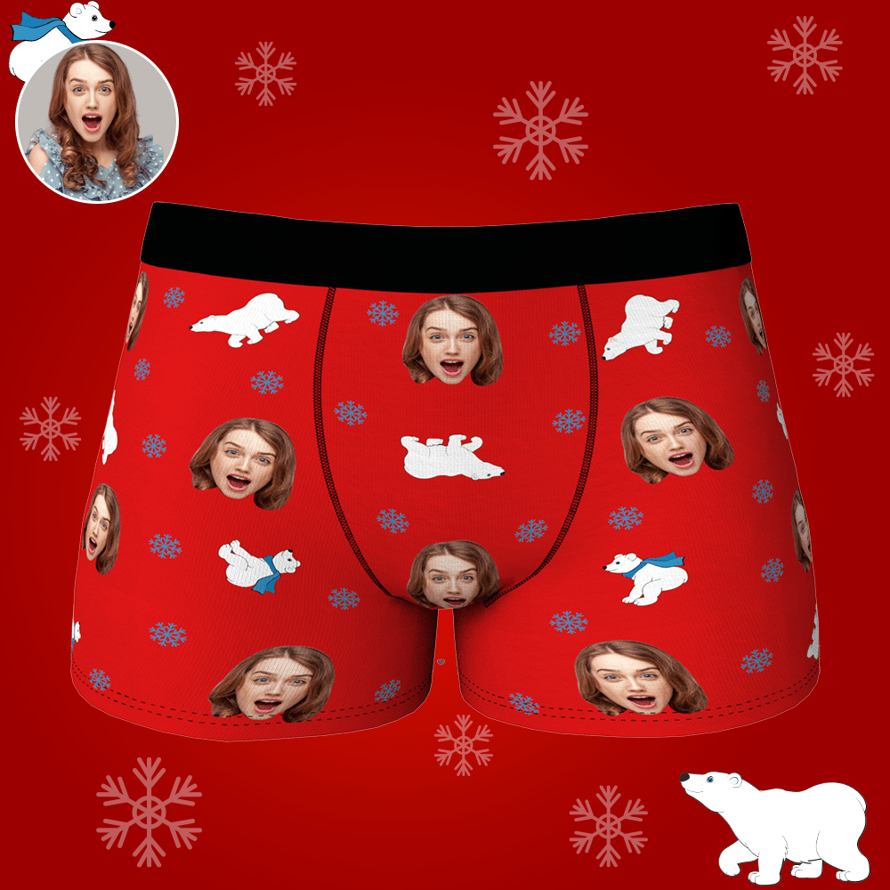 Boxer Personnalisé Visage Avec Ours Polaire Cadeau St Valentin Drôle Pour Lui