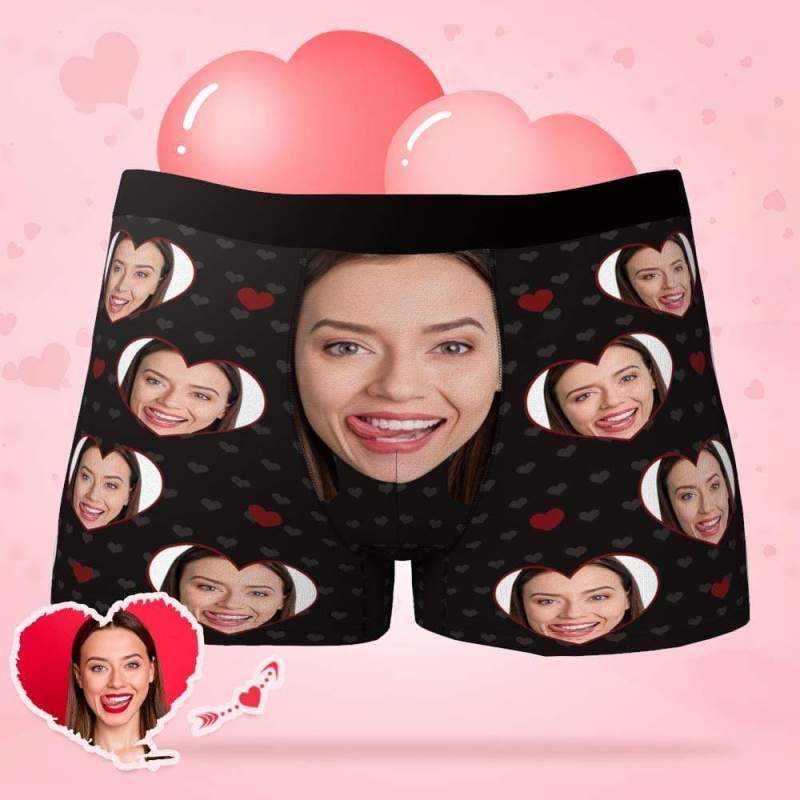 Boxer Visage Personnalisé Avec Coeur Cadeau St Valentin Pour Petit Ami