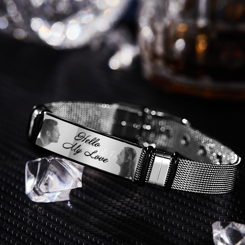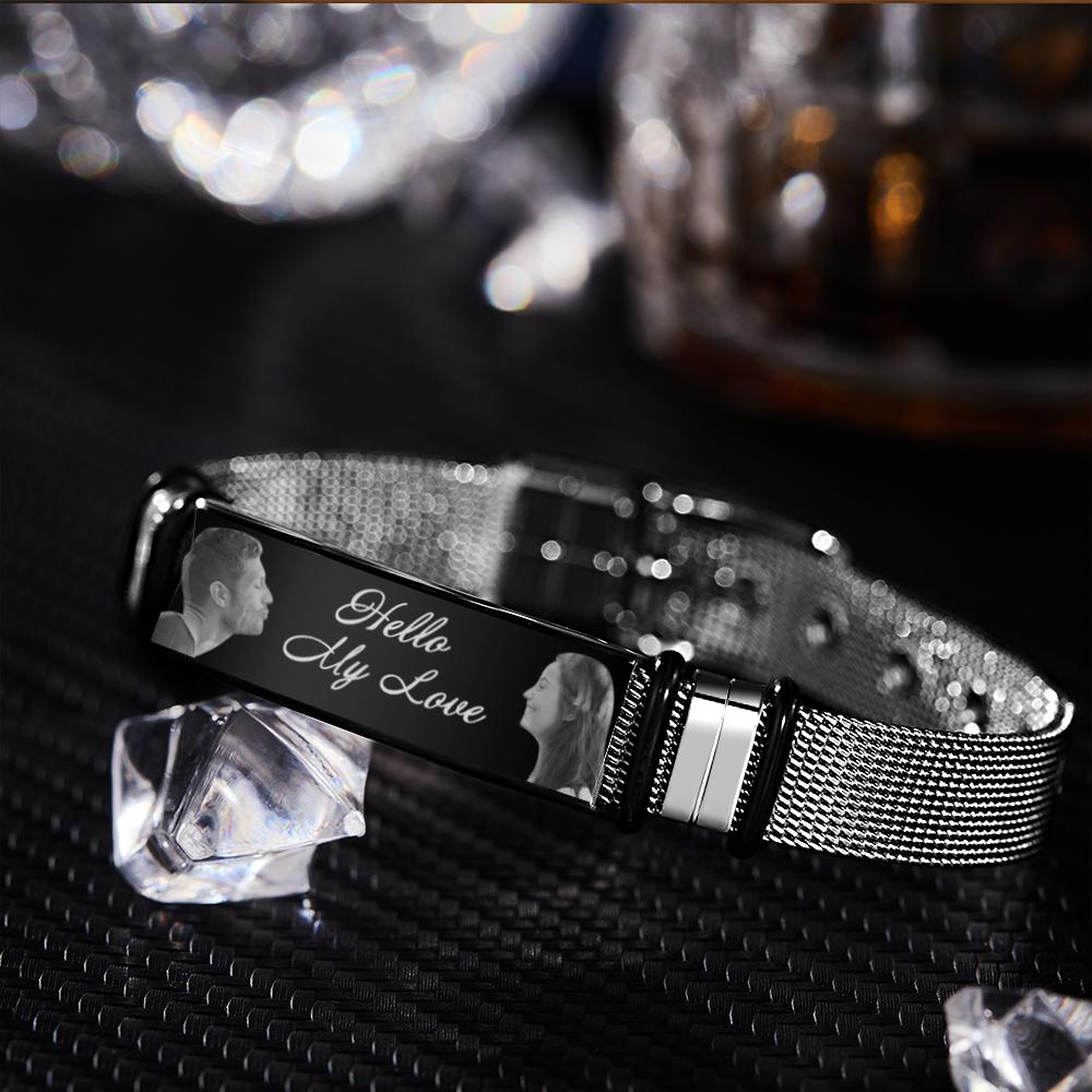 Bracelet homme personnalisé avec double photo et gravure Meilleur cadeau pour votre père