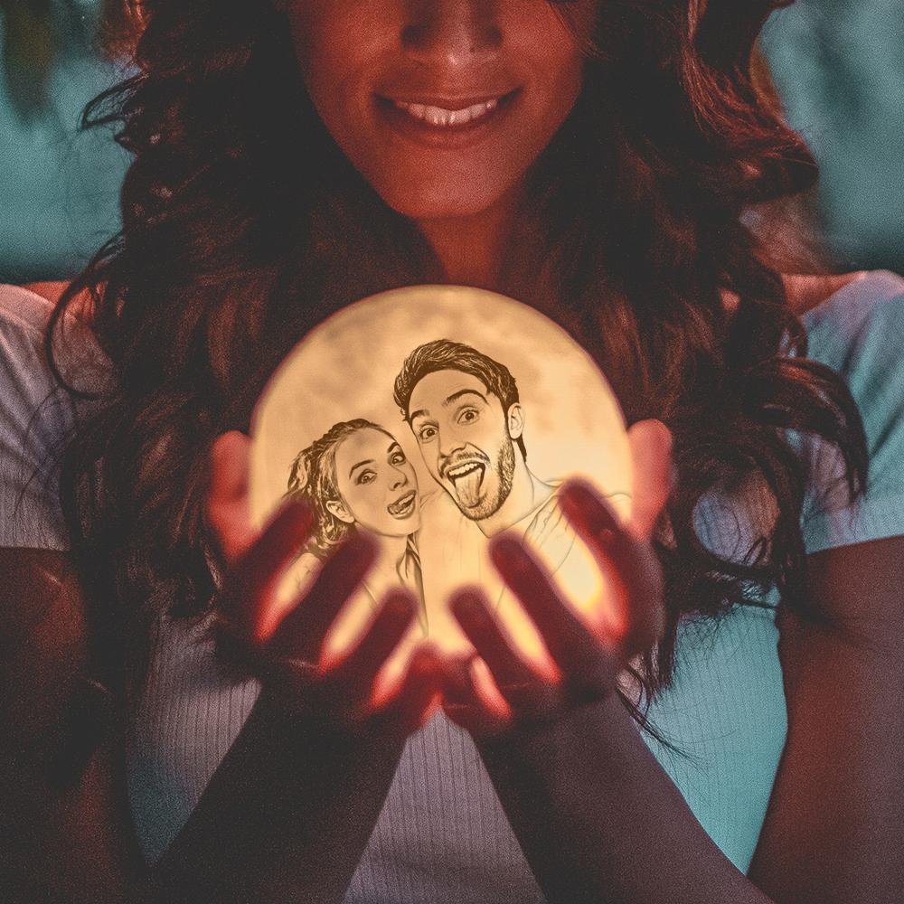Cadeau d'anniversaire de lampe de lune gravée de photo pour elle