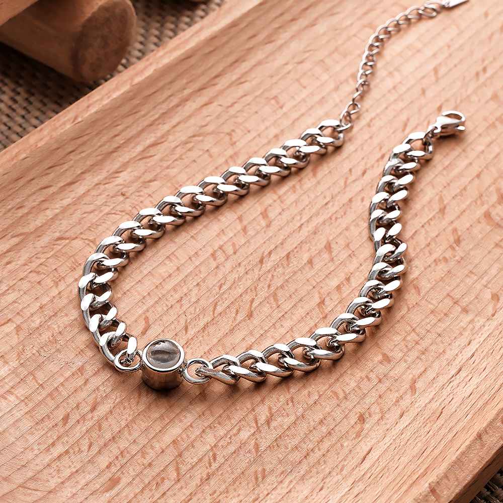 Dites à quelqu'un de spécial combien vous l'aimez avec cet élégant bracelet photo-projecteur. Tenez simplement le pendentif devant une source de lumière et il projettera la photo. Un cadeau parfait pour les anniversaires, les anniversaires, les mariages, la fête des mères, la Saint-Valentin et le jour de Noël. Il est recommandé de retirer le bracelet lorsque vous êtes près de l'eau ou dans toutes les circonstances où le bracelet peut être recouvert d'eau ou d'huiles corporelles.