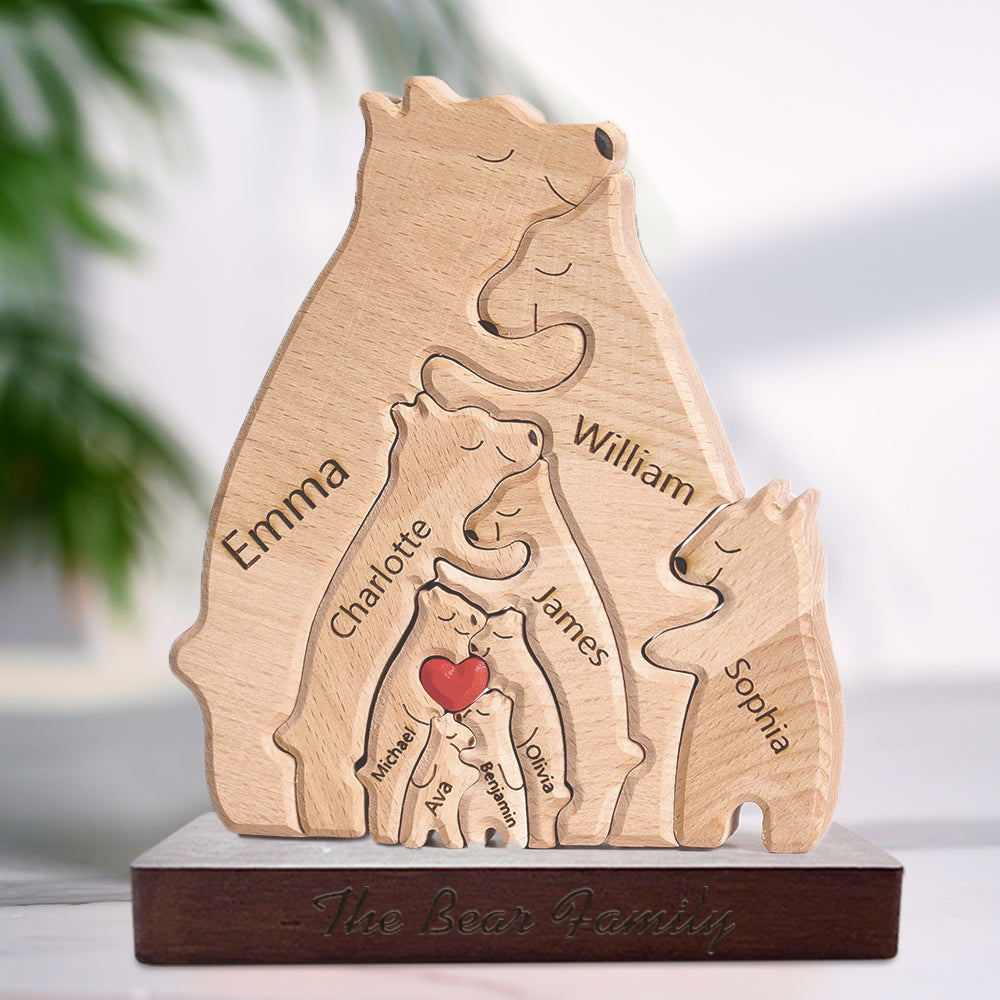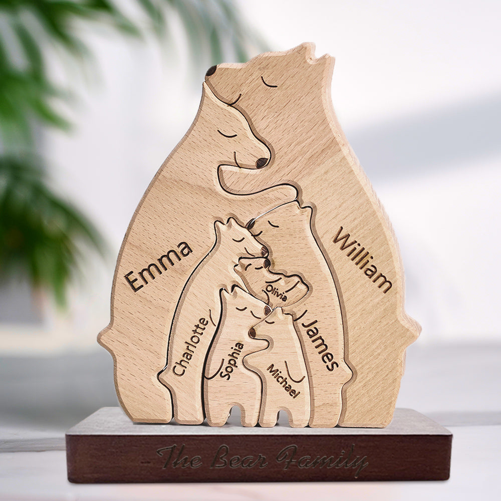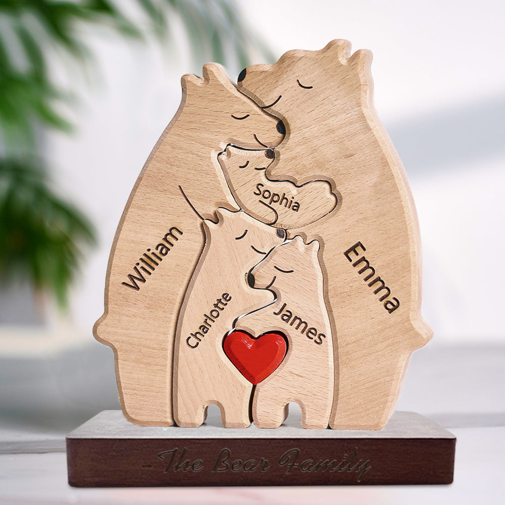 Cadeau de la Saint-Valentin Puzzle familial ours en bois personnalisé Noms personnalisés Cadeaux de décoration d'intérieur pour maman(Seul Puzzle)