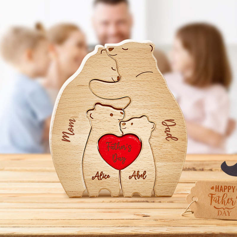 Cadeaux de la fête des pères Ours câlins en bois personnalisé pour la saint-valentin, Puzzle des noms des membres de la famille, cadeaux de décoration de la maison