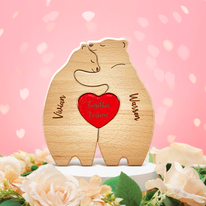 Cadeaux de la Saint-Valentin Ours câlins en bois personnalisé Puzzle des noms des membres de la famille, cadeaux de décoration de la maison pour Couple