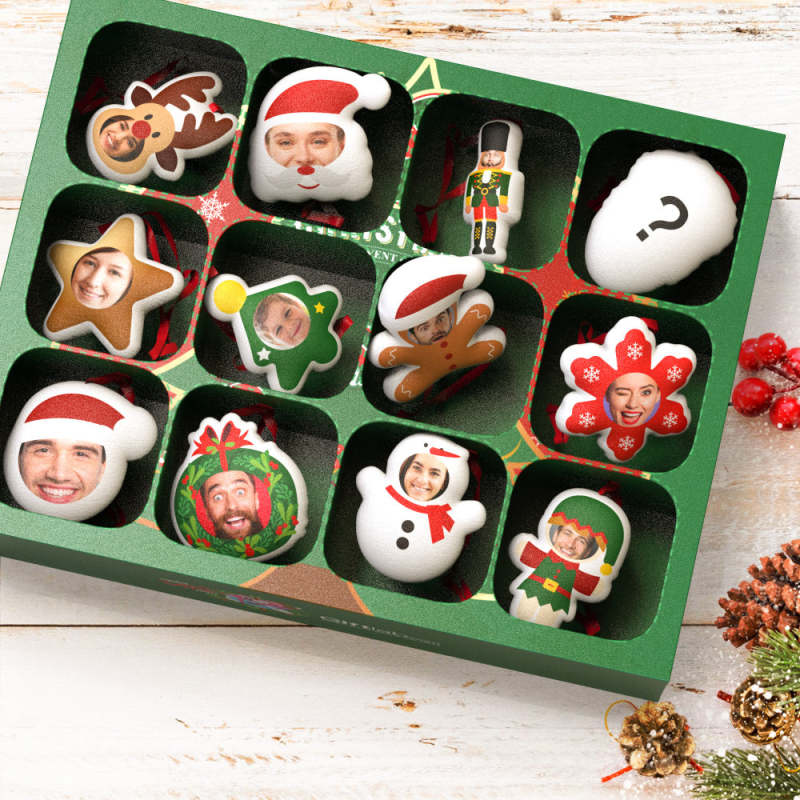 Inside the blind box there are 12 ornaments, and you can upload your photo to customize the unique Christmas blind box.?Can be used as a Christmas gift, family gift for dad, mom, your family, friends, colleagues, anyone! There is a unique hidden model inside the blind box, hope you will like it.