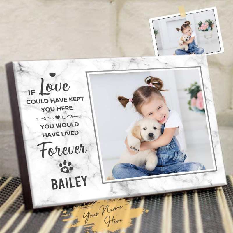 Les animaux de compagnie deviennent des membres aimés d'une famille et leur décès nous laisse le cœur lourd. avec une photo et un nom d'animal de compagnie personnalisés. Honorez l'amour et la joie que votre animal de compagnie a apportés à votre famille avec des cadres photo personnalisés.