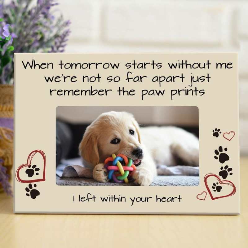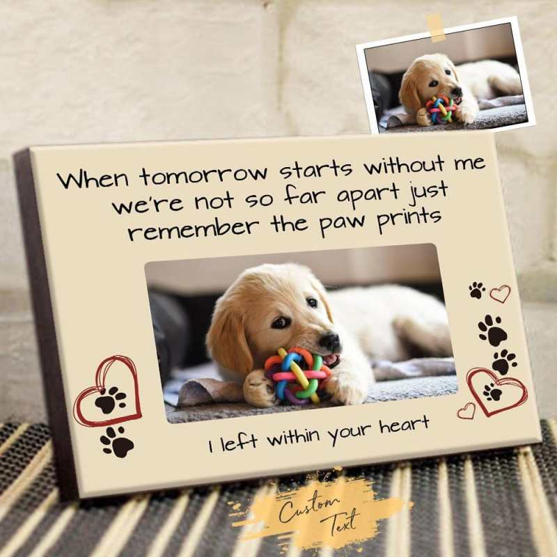 Les animaux de compagnie deviennent des membres aimés d'une famille et leur décès nous laisse le cœur lourd. avec une photo et un nom d'animal de compagnie personnalisés. Honorez l'amour et la joie que votre animal de compagnie a apportés à votre famille avec des cadres photo personnalisés.