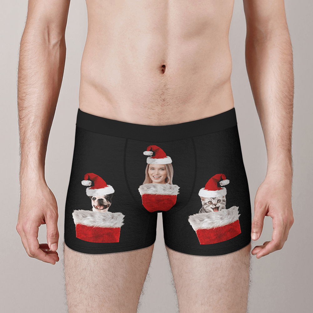 Caleçon Personnalisé En Photo de Visage Avec Chapeau Cadeau de Noël Drôle Pour Lui