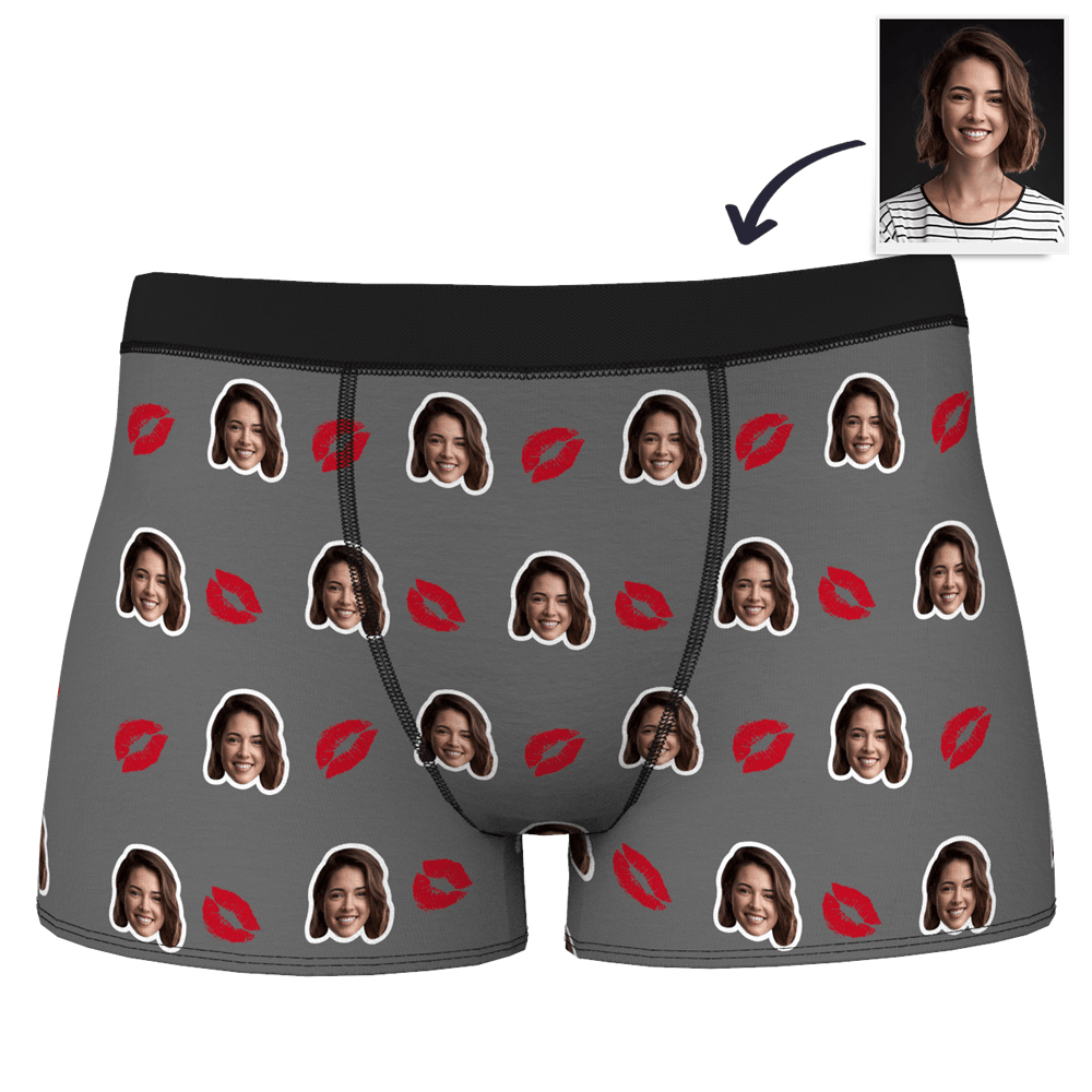 Caleçon Personnalisé Visage Baiser Cadeau de Saint Valentin Pour Petit Ami