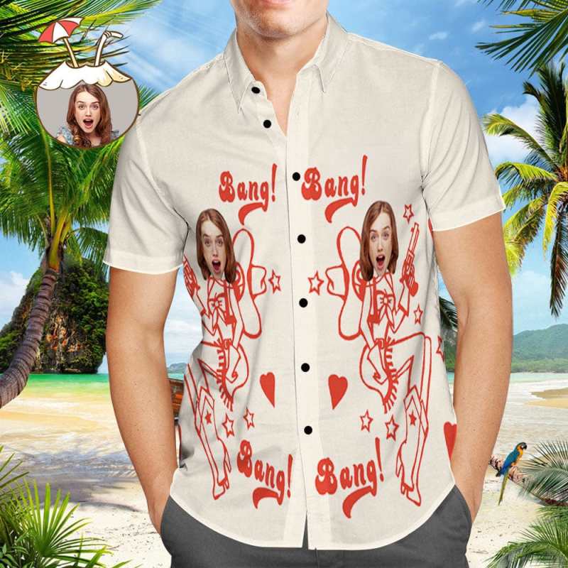 Chemise Hawaïenne Homme Avec Visage Personnalisé Cadeau Pour Lui - Fille Cow-boy