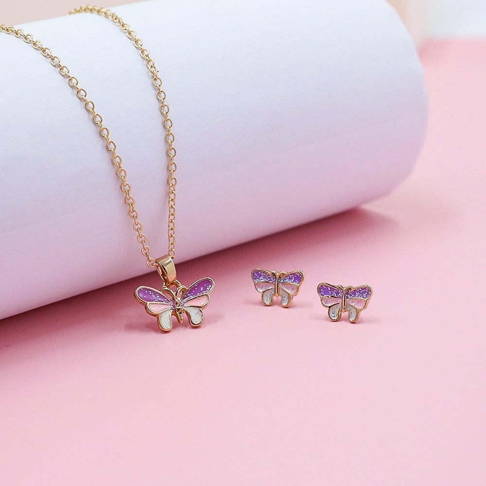Collier Papillon Coloré Avec Boucles d'Oreilles Cadeaux de Saint-Valentin Pour Elle