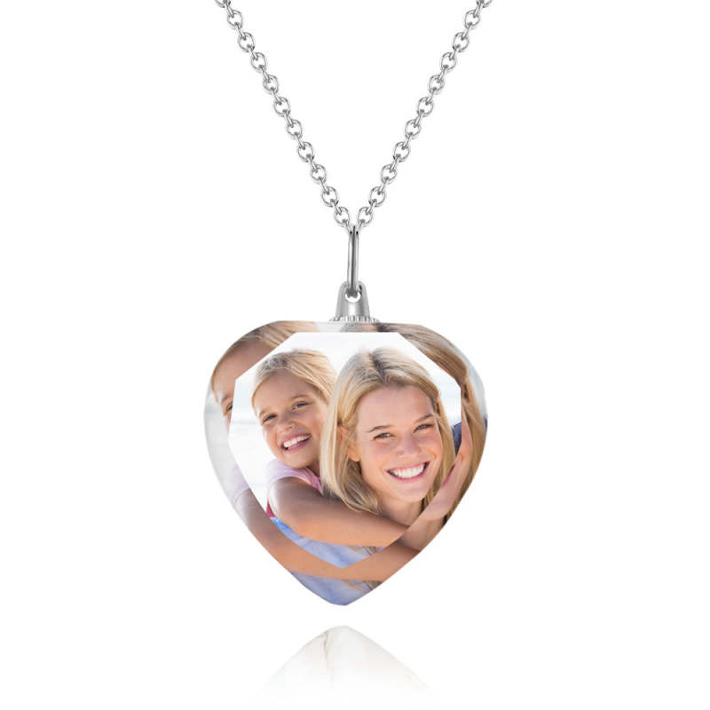 Collier Photo Personnalisé Coeur Cristal Pendentif Photo Fête des Mères Cadeaux