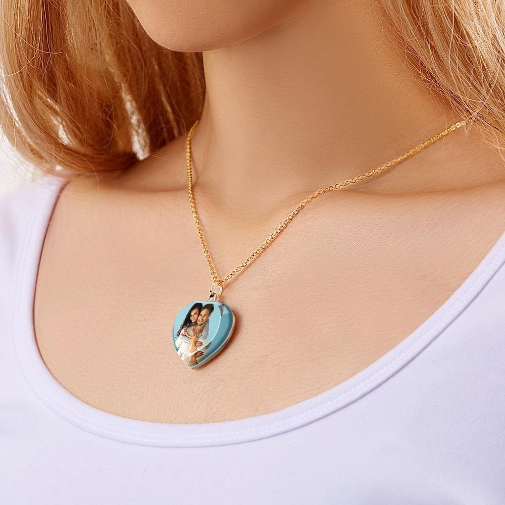 Collier Photo Personnalisé Pendentif Photo En Cristal Coeur Cadeaux Saint Valentin Cadeaux Fête des Mères
