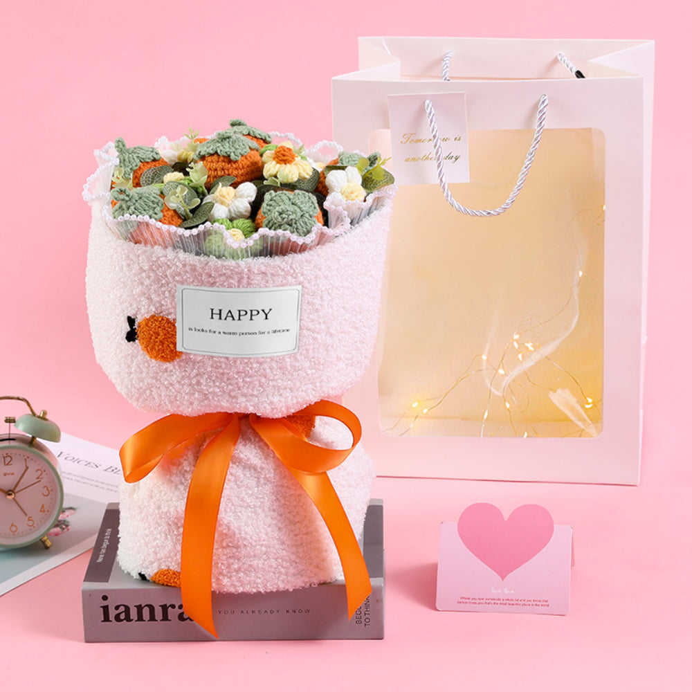 Bouquet De Fleurs Au Crochet Bouquet De Fraises Tricoté À La Main Avec Cadeau De Bande Lumineuse Pour Les Amoureux