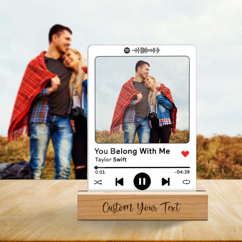 Plaque De Chanson Spotify En Acrylique Personnalisée Avec Support En Bois Gravé, Cadeau D'anniversaire De Mariage