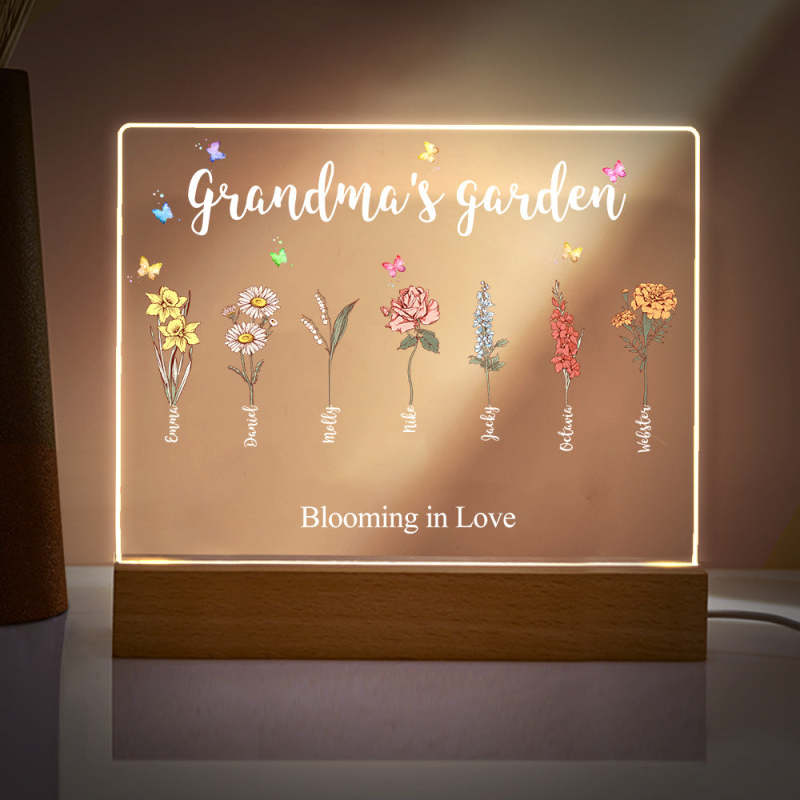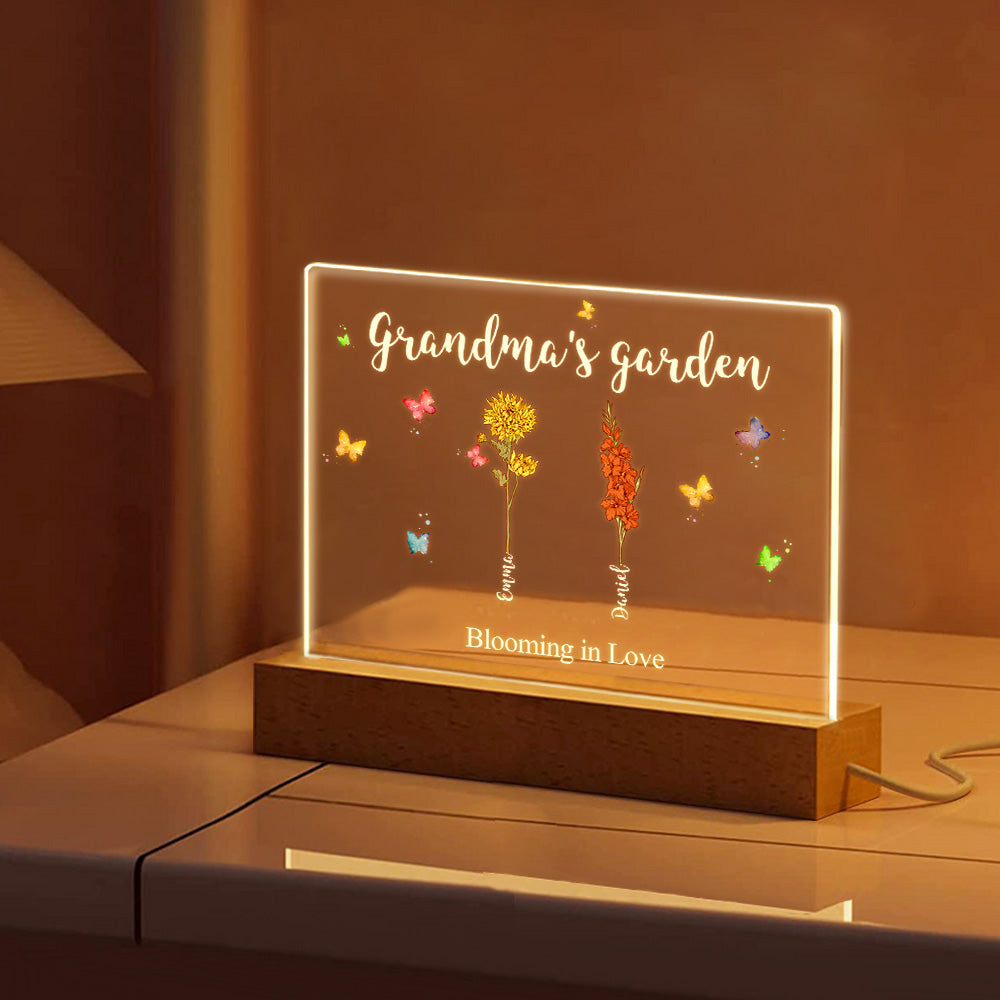Lampe Acrylique De Jardin De Grand-mère, Fleurs De Naissance Personnalisées, Veilleuse, Cadeaux Pour Maman Et Grand-mère