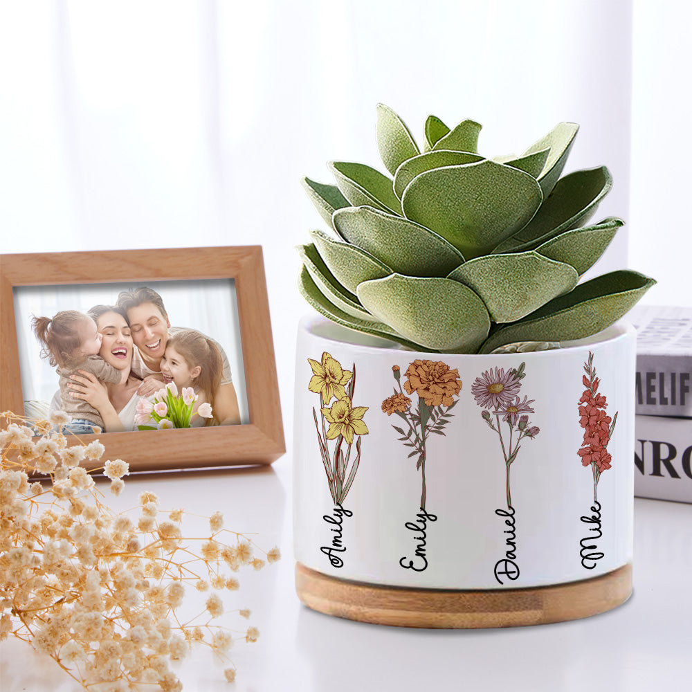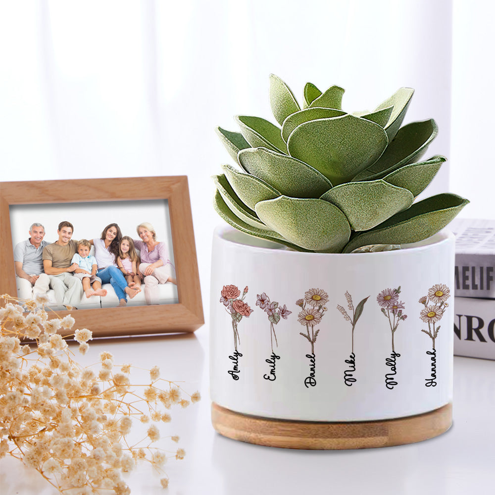 Pot De Jardinière De Fleurs Personnalisé Pour Le Mois De Naissance, Pot De Plantes Succulentes En Céramique Avec Nom Personnalisé