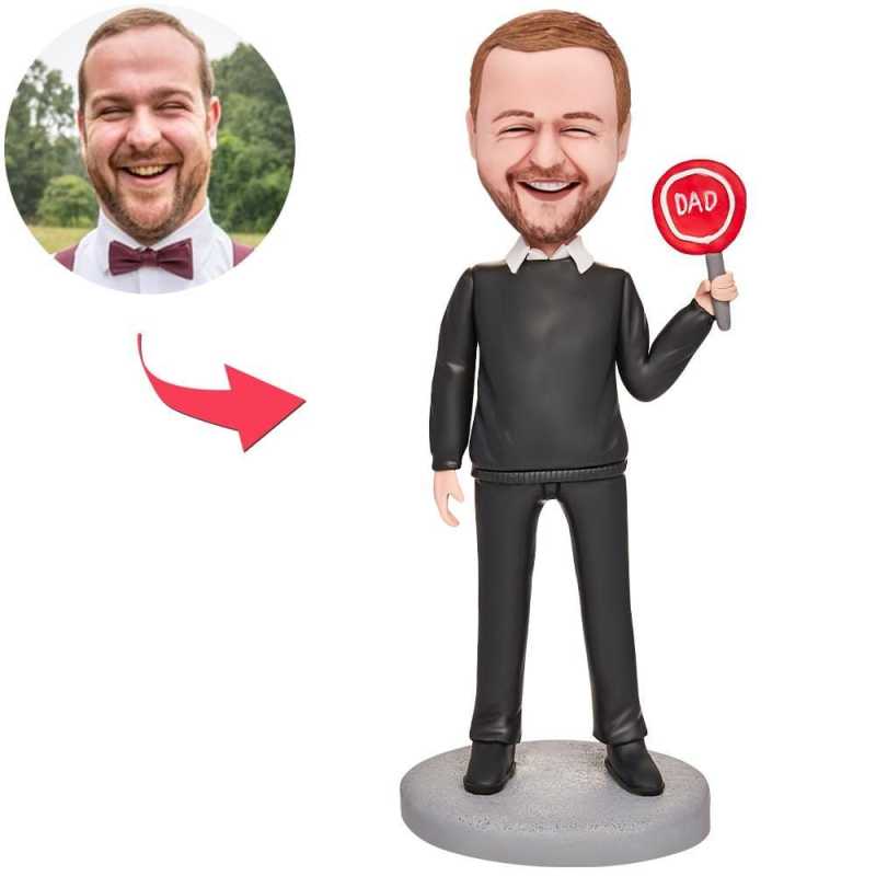 Bobblehead de fête des pères Bobblehead personnalisé avec texte gravé Cadeaux de fête des pères - Papa en T-shirt noir