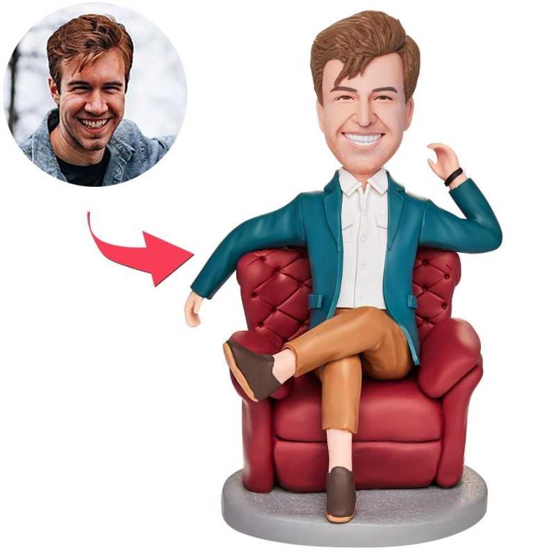 Bobblehead de la fête des pères Bobblehead personnalisé avec texte gravé Cadeaux de la fête des pères - Papa assis sur le canapé