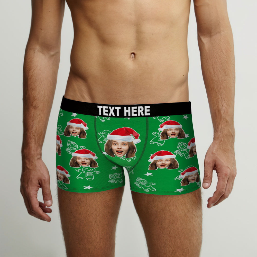 Sous-vêtements De Noël Personnalisés Avec Visage, Boxers Personnalisés Imprimés Avec Motif Biscuit Et Chapeaux, Cadeau Pour Petit Ami