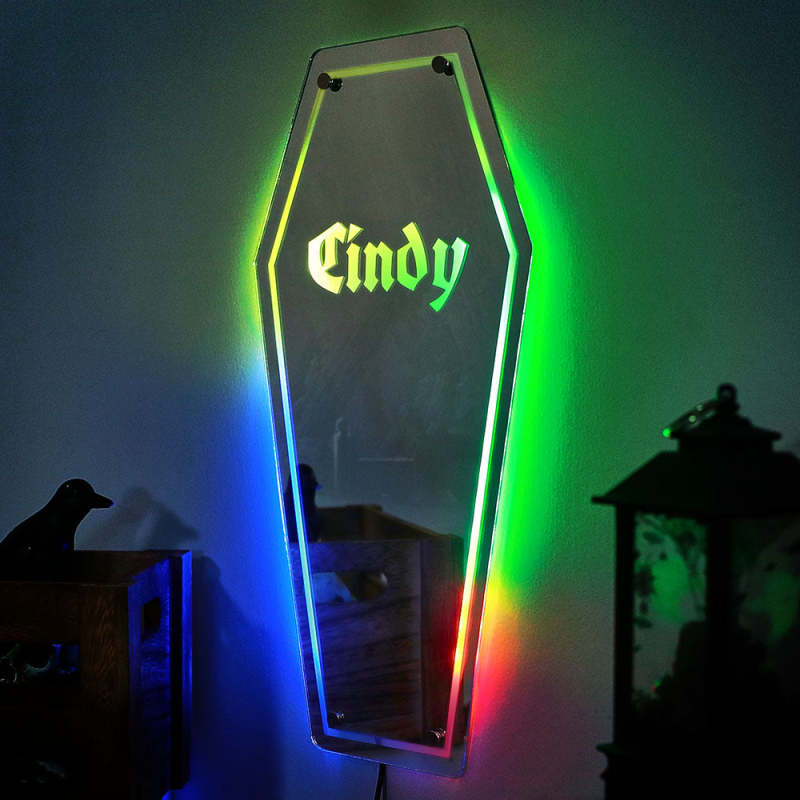 Lumière De Miroir De Cercueil Personnalisée Avec Nom, Lumière De Miroir Gothique Pour La Décoration De La Maison