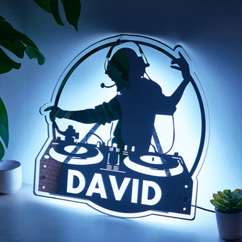 Lumière De Miroir De Lecteur Dj Personnalisée Avec Nom, Cadeau Personnalisé Pour Les Amateurs De Musique