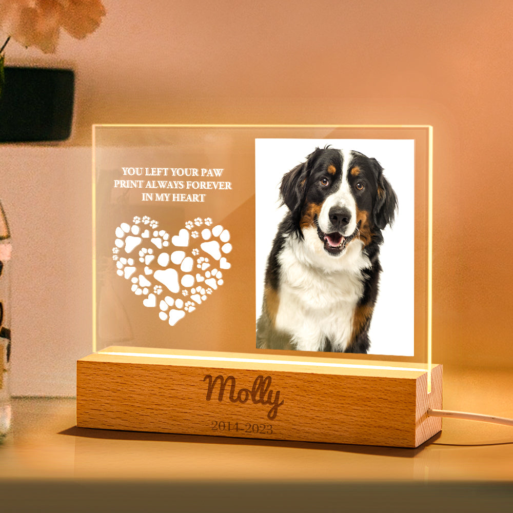 Lampe Gravée Acrylique De Veilleuse De Photo De Chien Faite Sur Commande Dans La Mémoire De L'animal De Compagnie