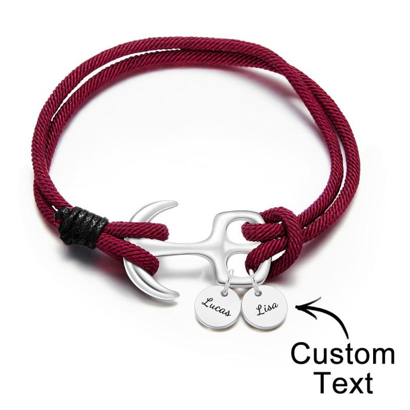 Bracelet Gravé Personnalisé Bracelet Cordon D'ancre Marine Cadeau Pour Homme