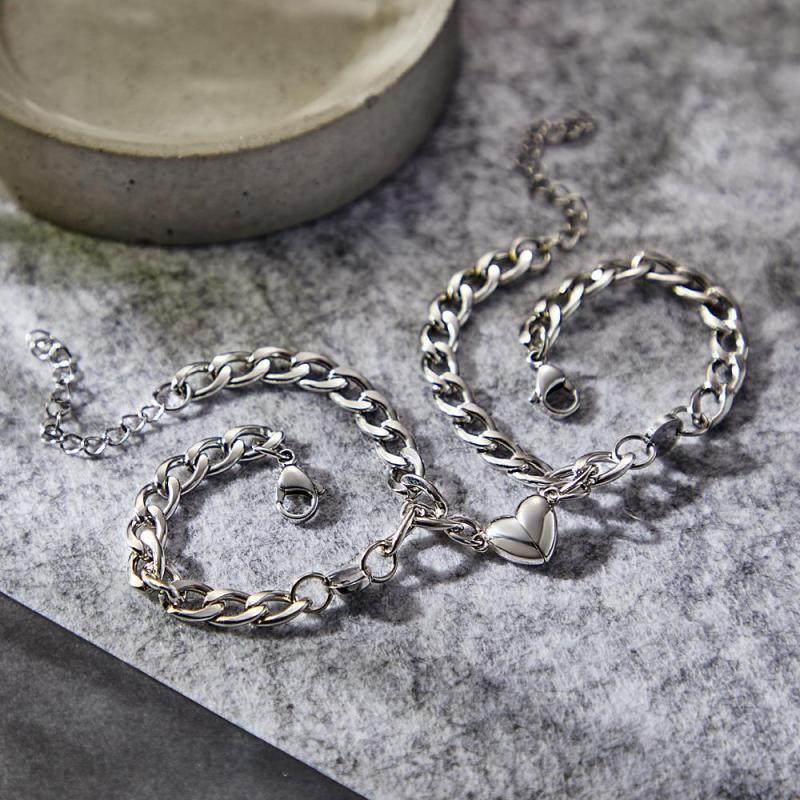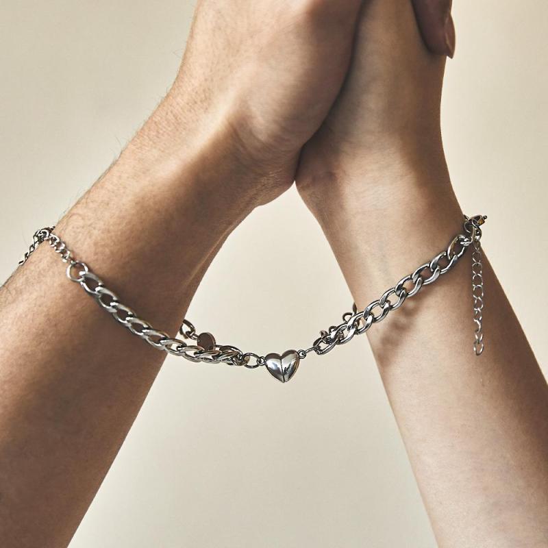 Ce bracelet de couple est fabriqué en acier inoxydable, ne se décolore pas facilement, soyez assuré de le porter. Les bijoux en forme de cœur symbolisent que les cœurs des couples sont étroitement attirés l'un vers l'autre. Le bracelet magnétique pour couples sera un cadeau significatif pour les amis/amoureux/couple le jour de la Saint-Valentin, mariage, anniversaire et anniversaire, remise des diplômes, Noël, parfait pour toute occasion.