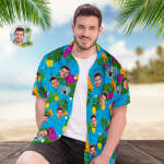 Chemise Hawaïenne Pour Hommes, Visage Personnalisé Imprimé Partout, Mignon Koala Et Feuilles, Cadeau Pour Lui