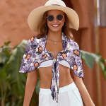 Visage Personnalisé Beach Wrap Purple Hawaiian Style Women Short Sarongs Gift For Her