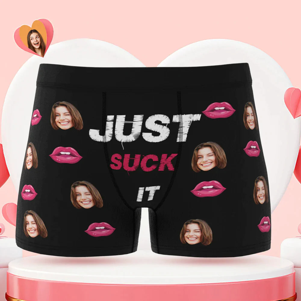 Boxer Visage Personnalisé Just Suck It Cadeau De Saint Valentin Coquin Personnalisé Pour Lui