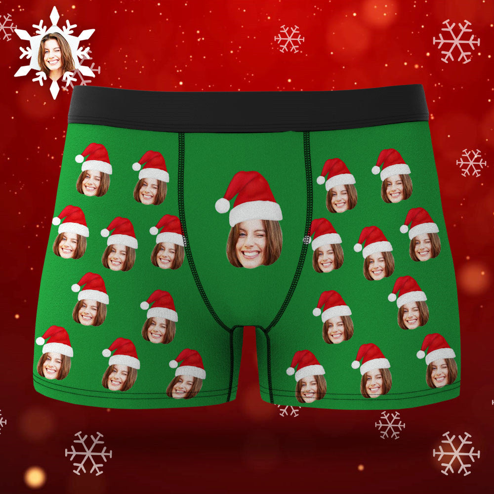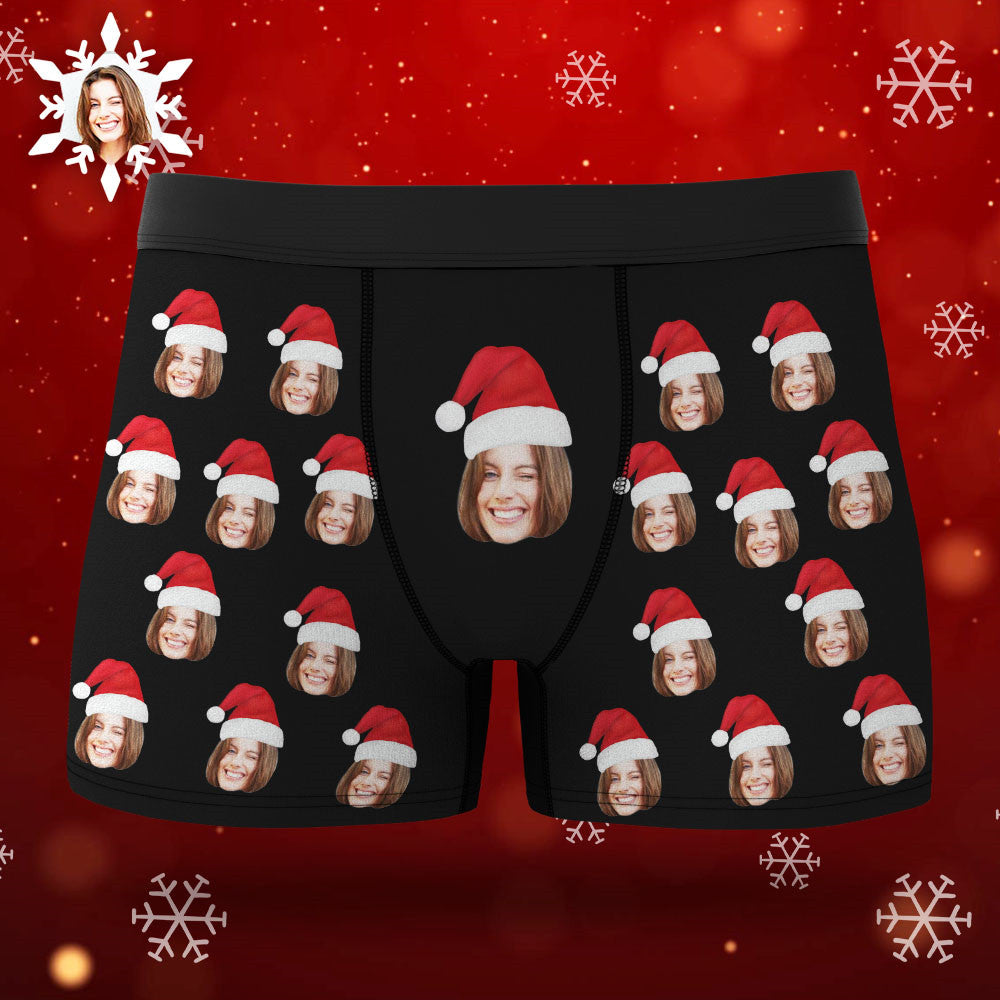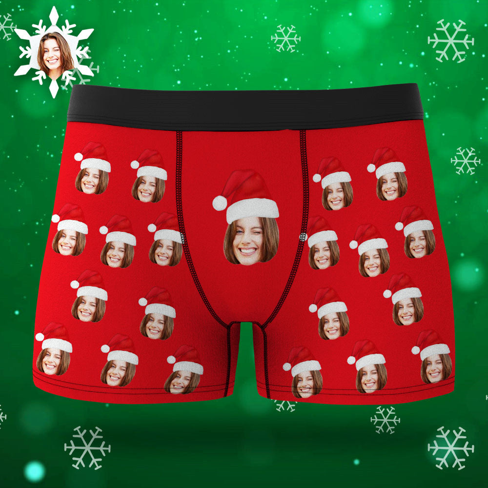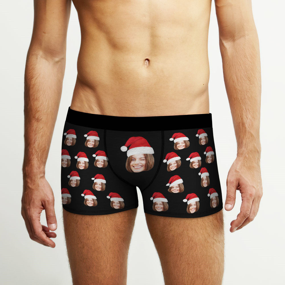 Boxer Avec Visage Personnalisé, Short Avec Chapeau De Noël, Sous-vêtements Photo Personnalisés, Cadeau De Noël Pour Hommes, Cadeau Ar View