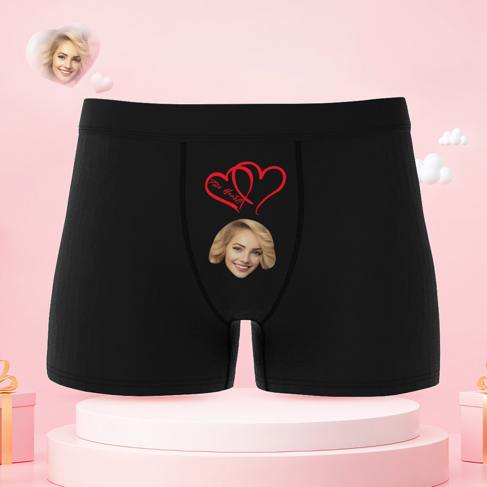 Sous-vêtements De Couple Avec Visage Personnalisé, Deux Cœurs, Un Amour, Sous-vêtements Personnalisés, Cadeau De Saint Valentin