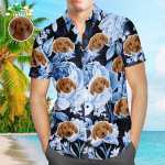 Visage Personnalisé Chemise Hawaïenne Tropical Bleu Rétro Fleur Hommes Populaire Partout Impression Hawaïenne Plage Chemise Cadeau De Vacances