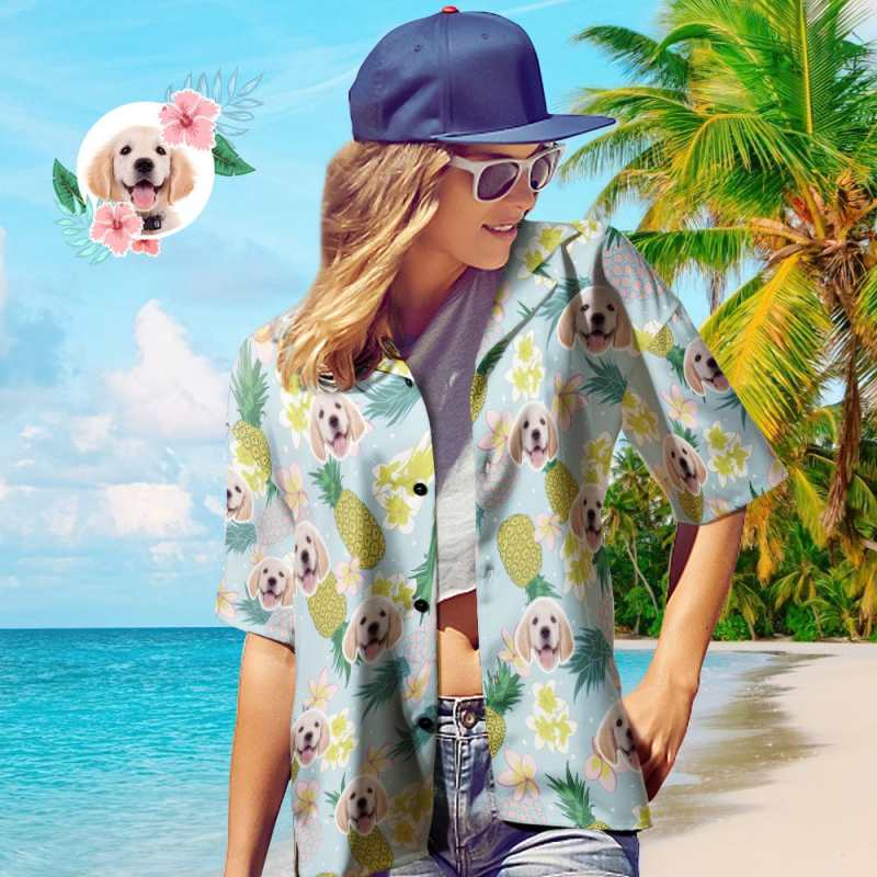 Chemises Hawaïennes Personnalisées De Visage De Chien Cadeau De Chemise Hawaïenne D'ananas Drôle Pour Le Propriétaire D'animal Familier