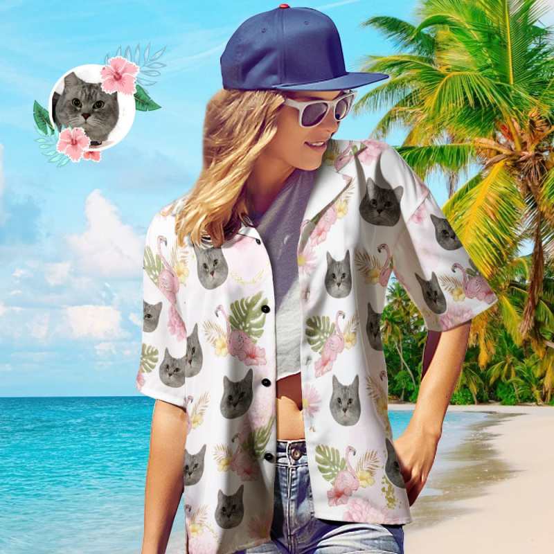 Chemises Hawaïennes Personnalisées De Visage De Chien Chemise Hawaïenne De Photo De Flamant Rose Pour Le Propriétaire D'animal Familier