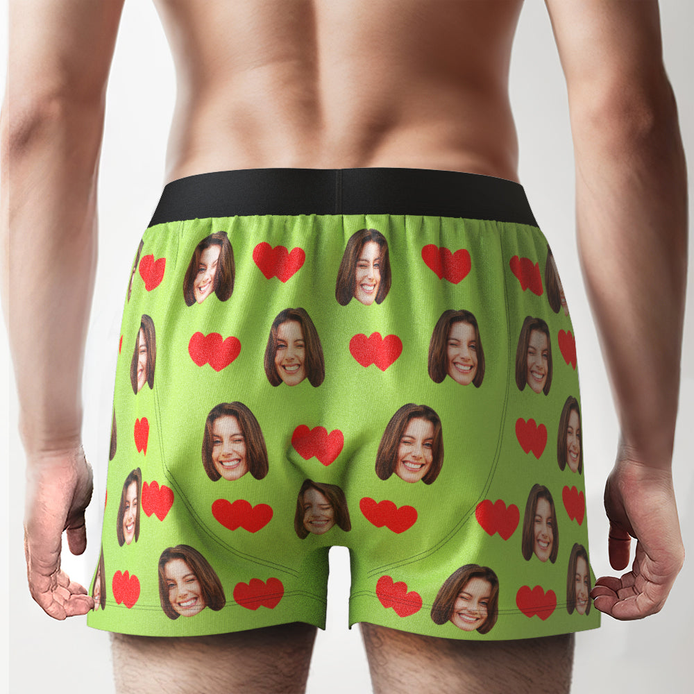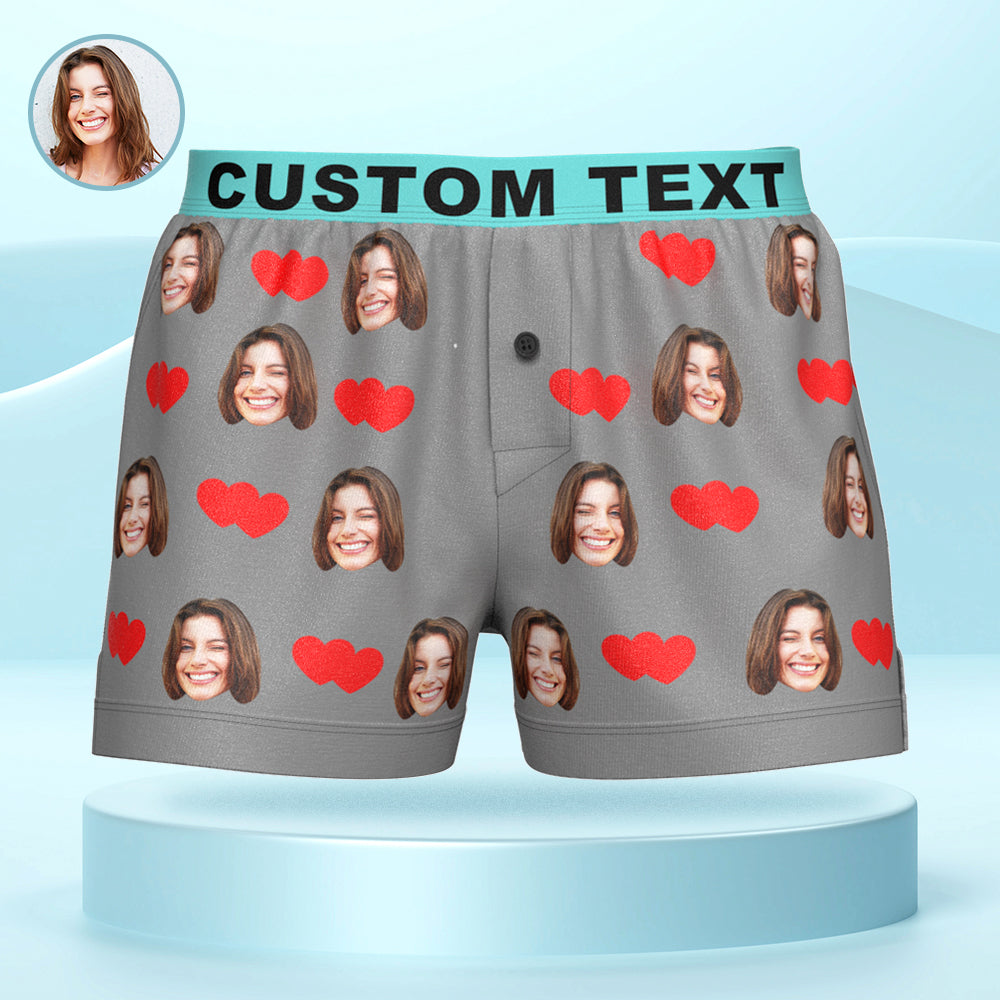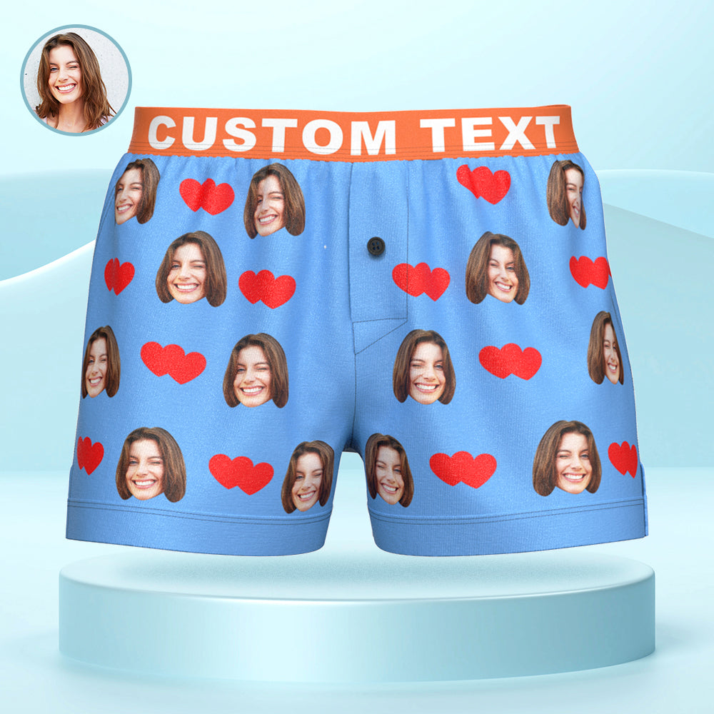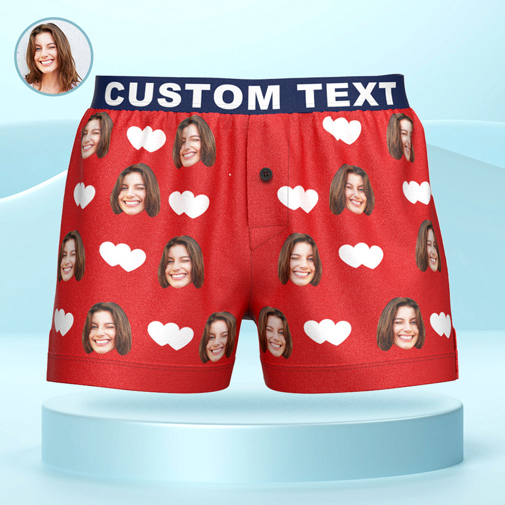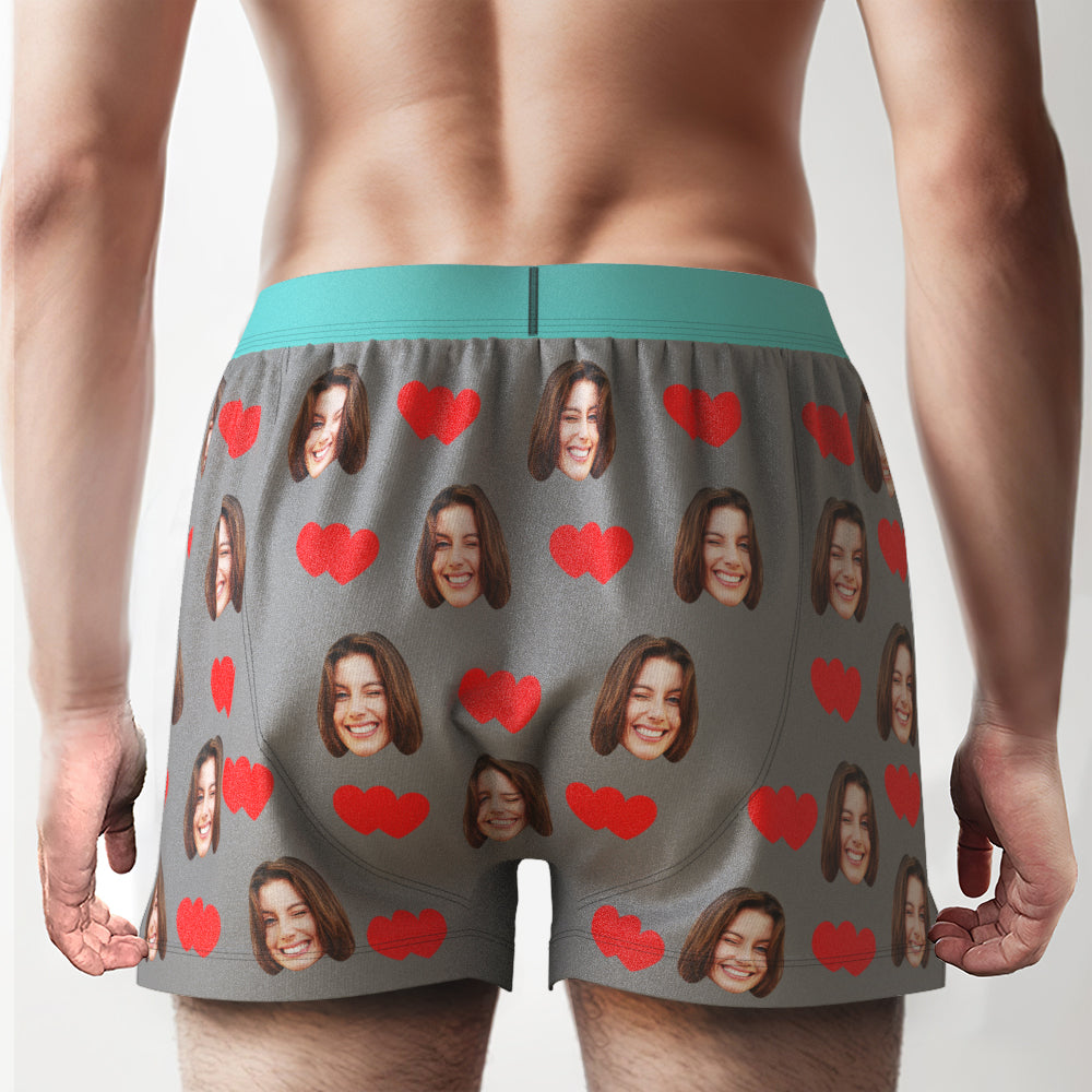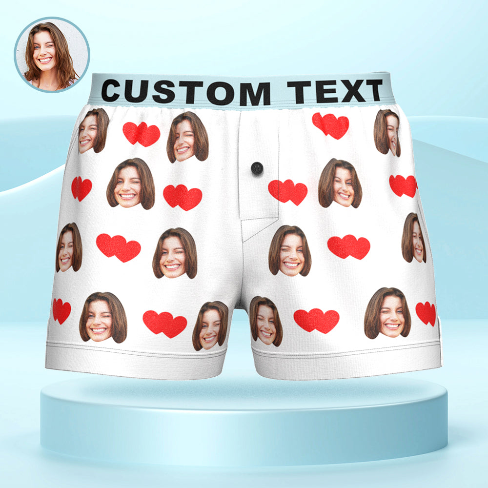 Boxer Personnalisé Avec Visage Et Cœurs D'amour, Sous-vêtements Décontractés Avec Ceinture Personnalisée Pour Lui