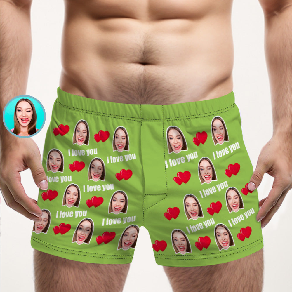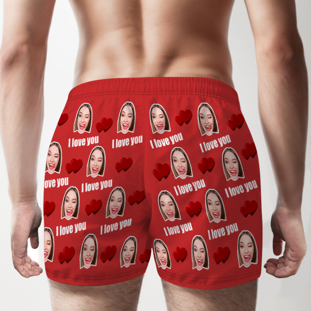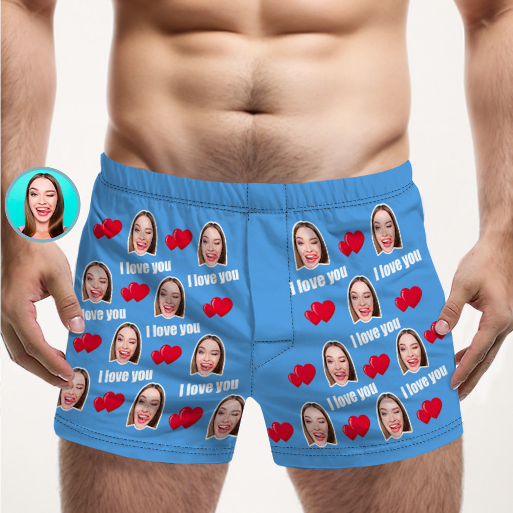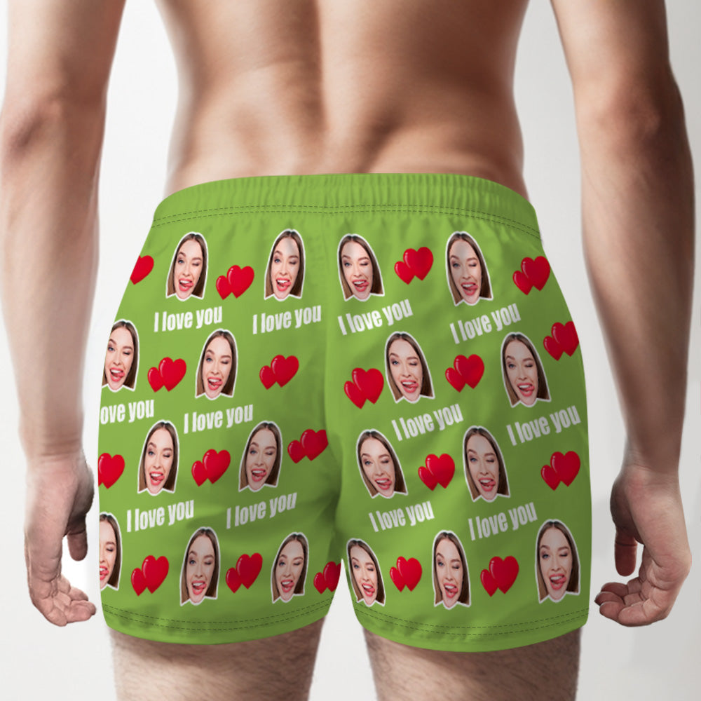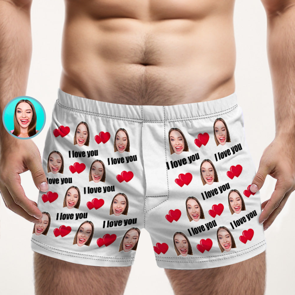 Boxer Multicolore I Love You Avec Visage Personnalisé, Sous-vêtements Avec Photo Personnalisé, Cadeau Pour Lui