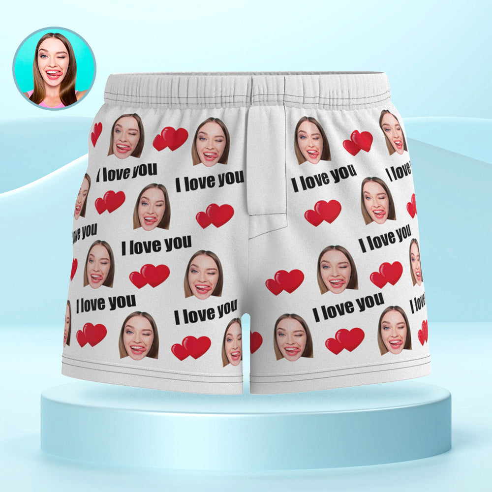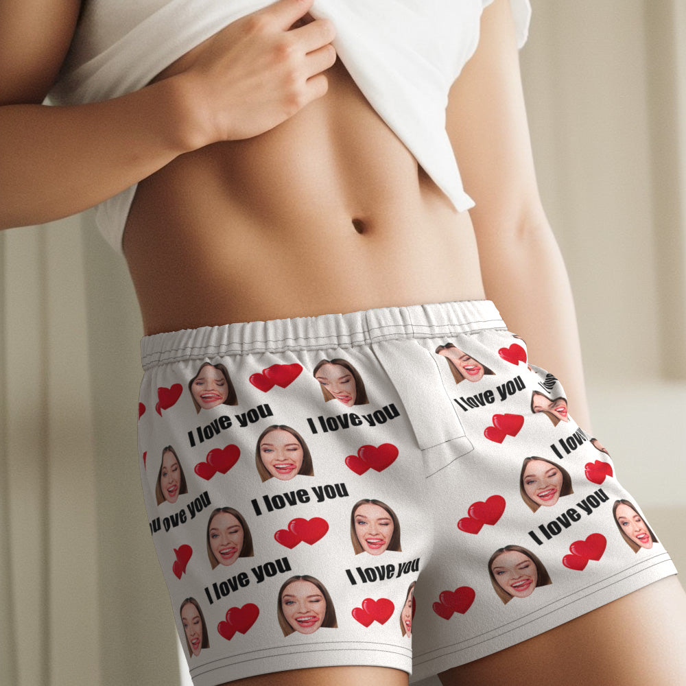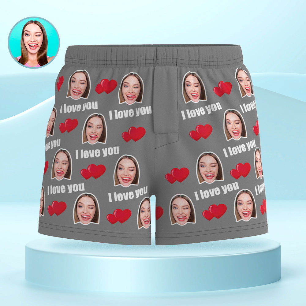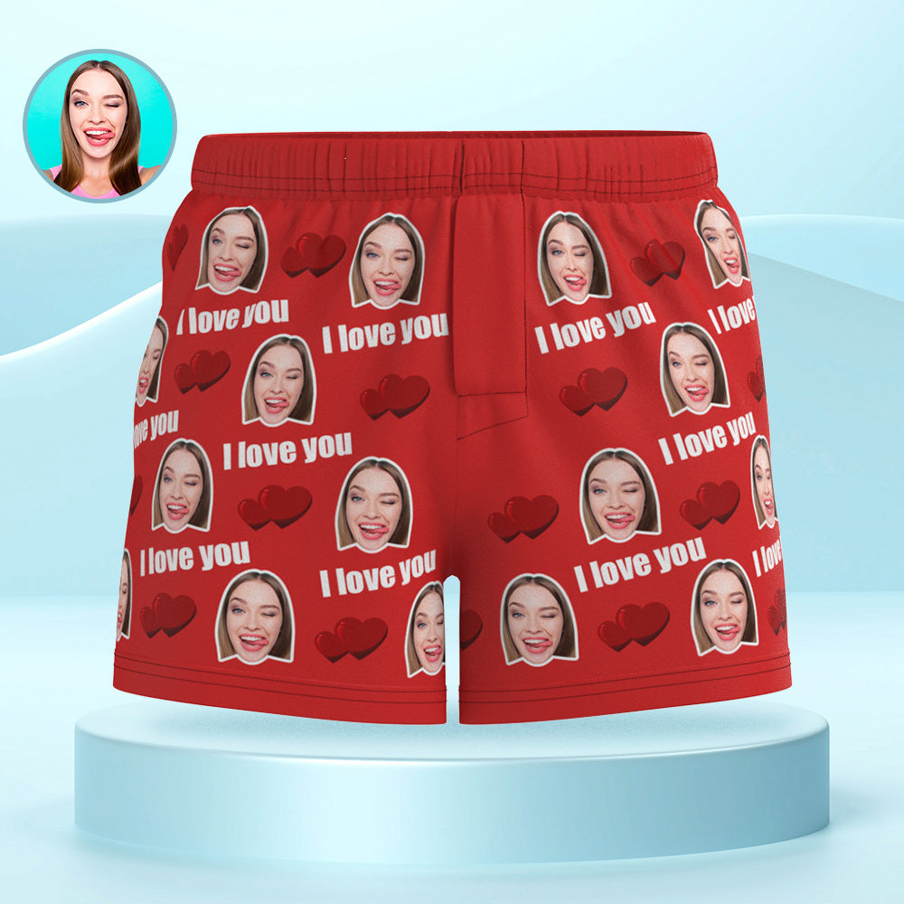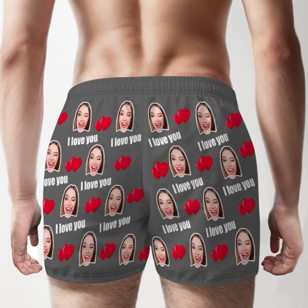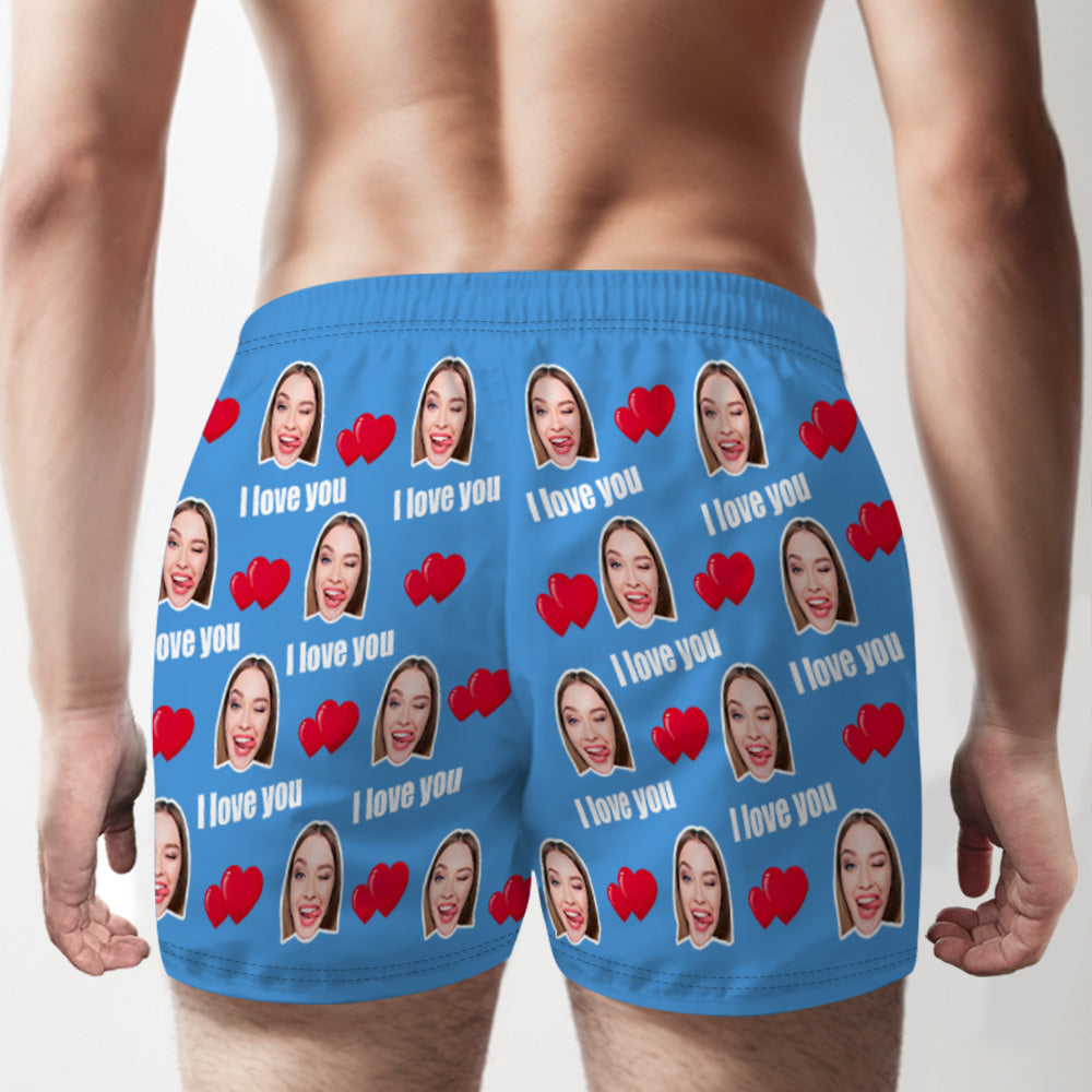Boxer Multicolore I Love You Avec Visage Personnalisé, Sous-vêtements Avec Photo Personnalisé, Cadeau Pour Lui