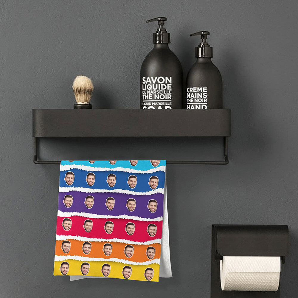 Serviette De Gâteau Arc-en-ciel De Visage Personnalisé Serviette De Photo Personnalisée Cadeau Drôle