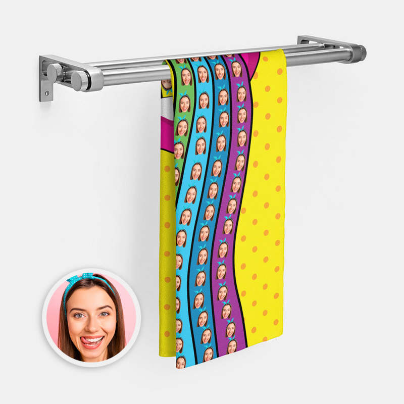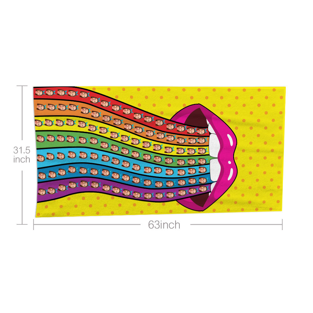 Serviette De Langue Arc-en-ciel Visage Personnalisé Serviette Photo Personnalisée Cadeau Drôle