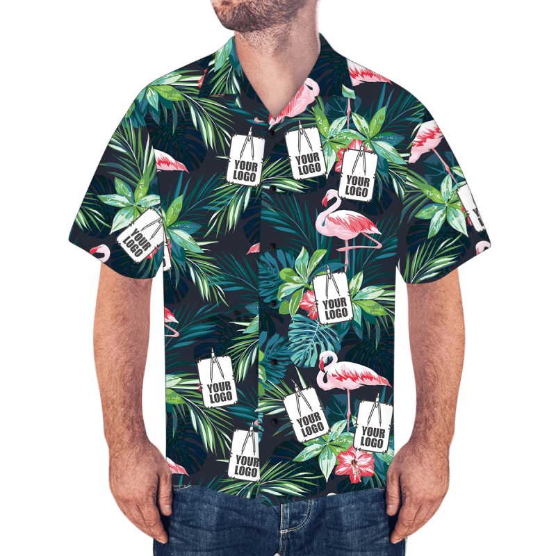 Mettez le logo de l'entreprise sur une chemise hawaïenne avec photo personnalisée.