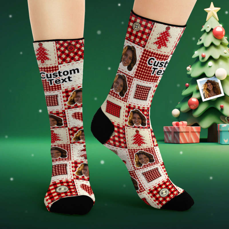 Chaussettes Visage Personnalisées Chaussettes Photo Personnalisées Motif À Carreaux De Noël