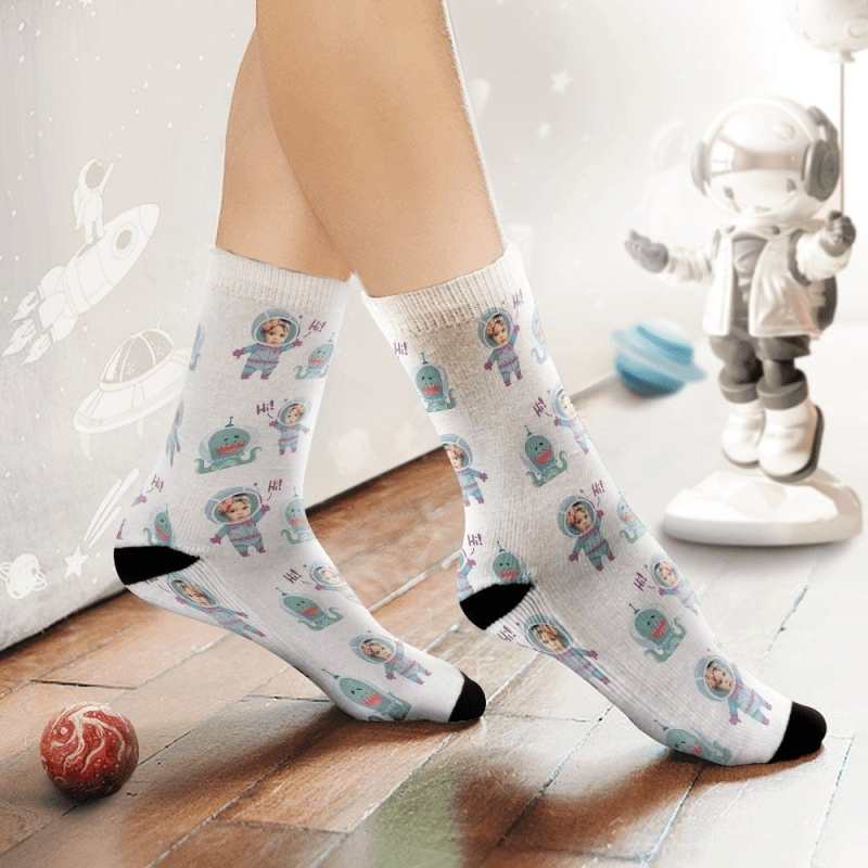 Chaussettes personnalisées pour le visage Chaussettes photo Astronaute et cadeaux extraterrestres pour les amoureux de l'espace