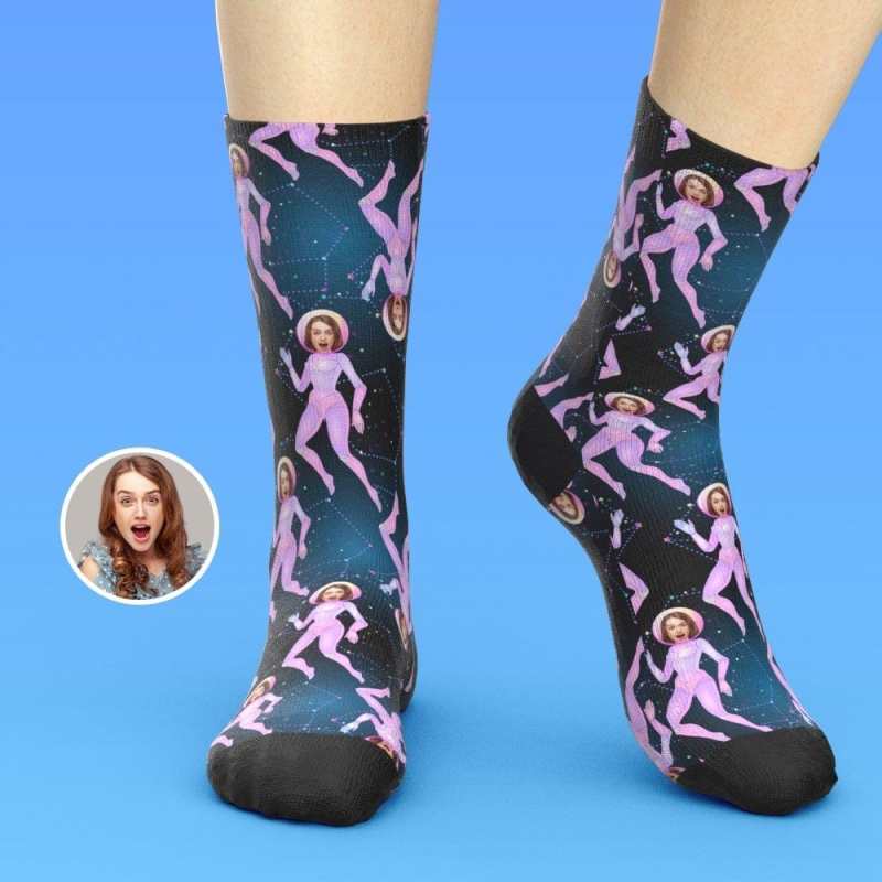 Chaussettes personnalisées pour le visage Chaussettes photo Cadeaux personnalisés pour les amoureux de l'espace
