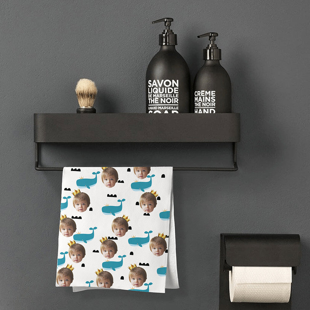 Serviette Personnalisée Visage Baleines Serviette Photo Personnalisée Cadeau Drôle