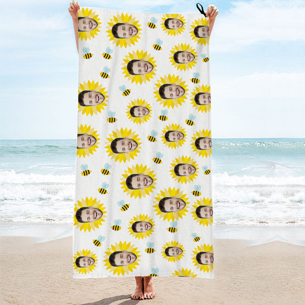 Serviette Tournesol Blanc Visage Personnalisé Serviette Photo Personnalisée Cadeau Drôle